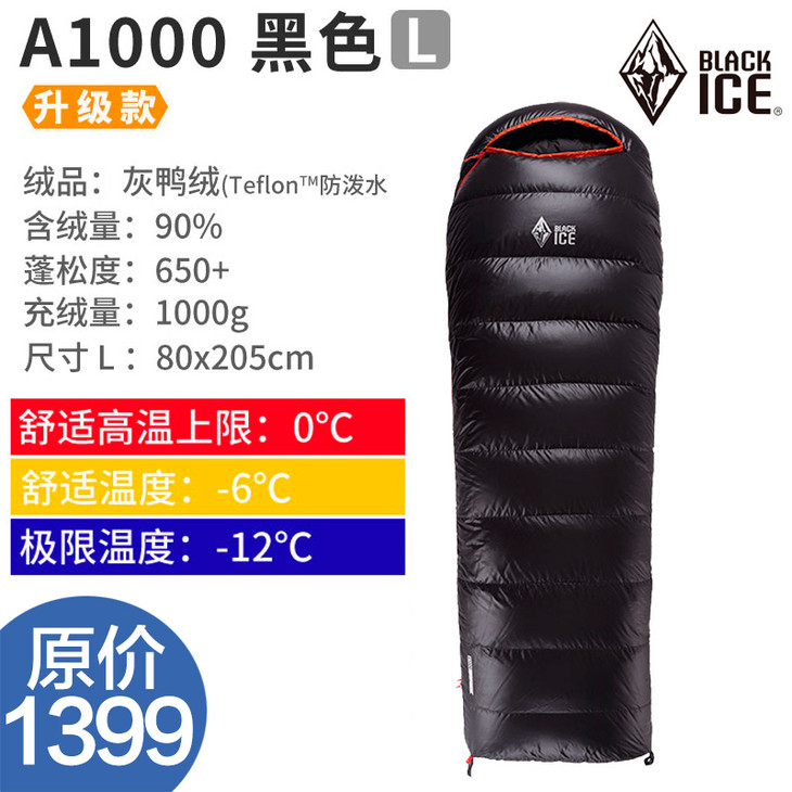 黑冰 羽绒睡袋 新款 A700 A1000 信封式睡袋