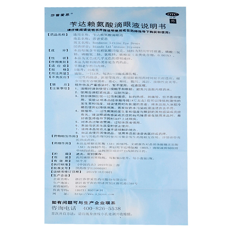 莎普爱思 苄达赖氨酸滴眼液 5ml 眼药水早期老年性白内障治疗药品