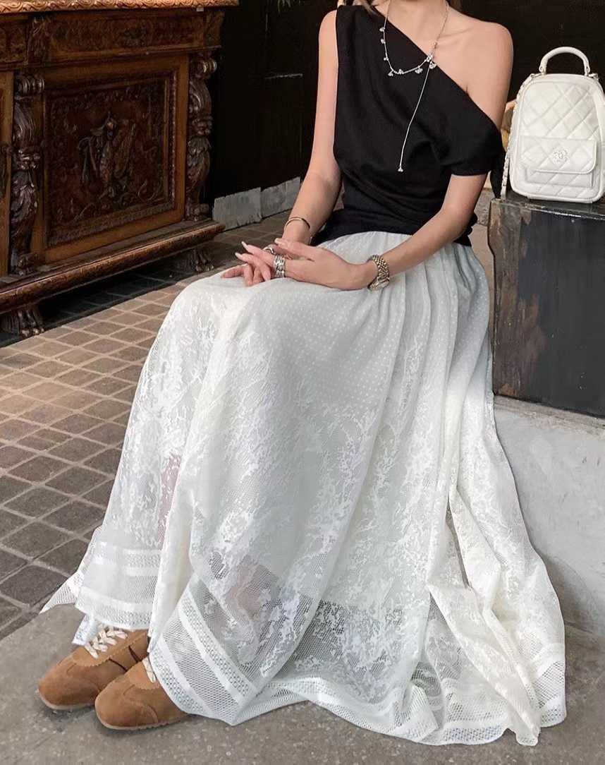 伯妮斯茵 | 优雅复古风 | 网纱蕾丝半身裙 | 大摆百褶设计 | 镂空蕾丝工艺 | 约会通勤|SC1B02
