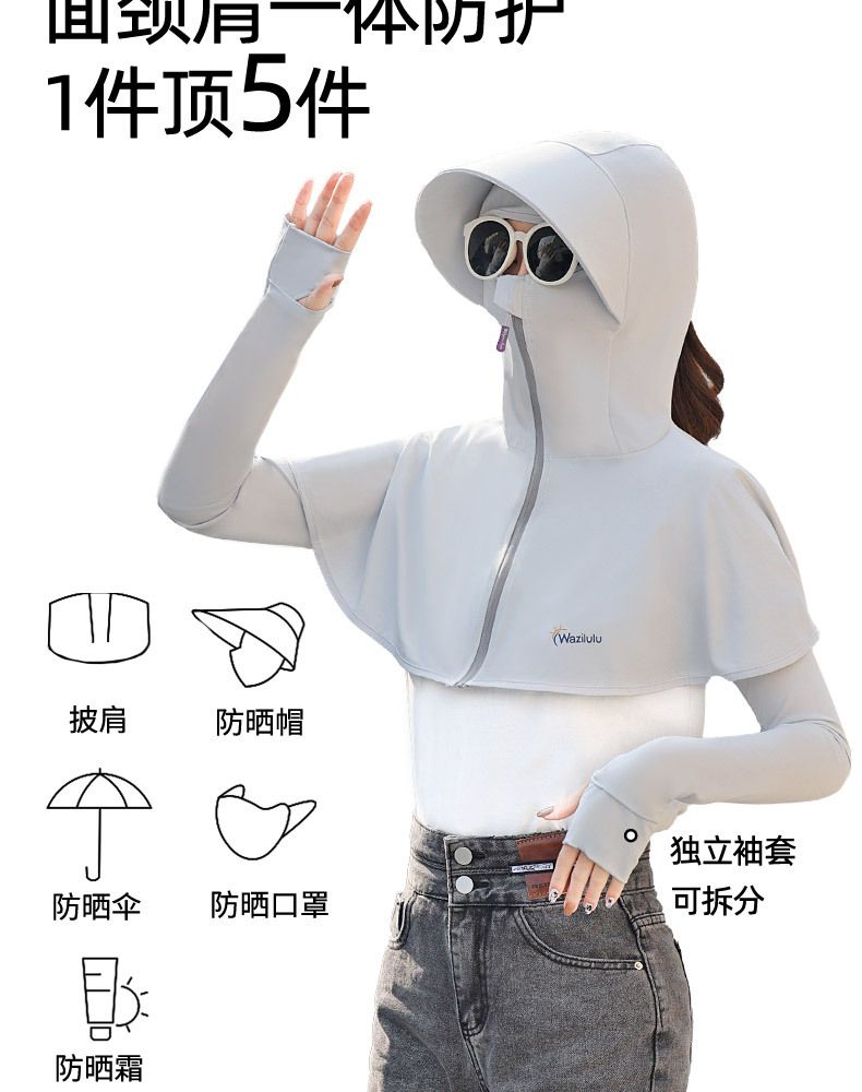 防晒帽子女夏天遮脸面罩骑车电动车面纱防紫外线遮阳帽太阳帽夏季