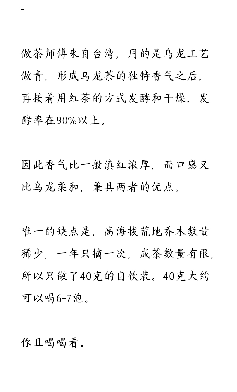 米马推荐 墨兰垂露 普洱江城高山乔木软枝乌龙红茶 40克自饮装