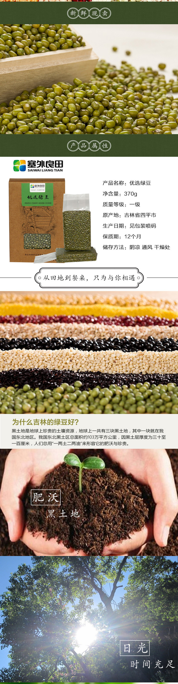 【塞外良田】优选东北绿豆 优选杂粮 手工挑选 370g