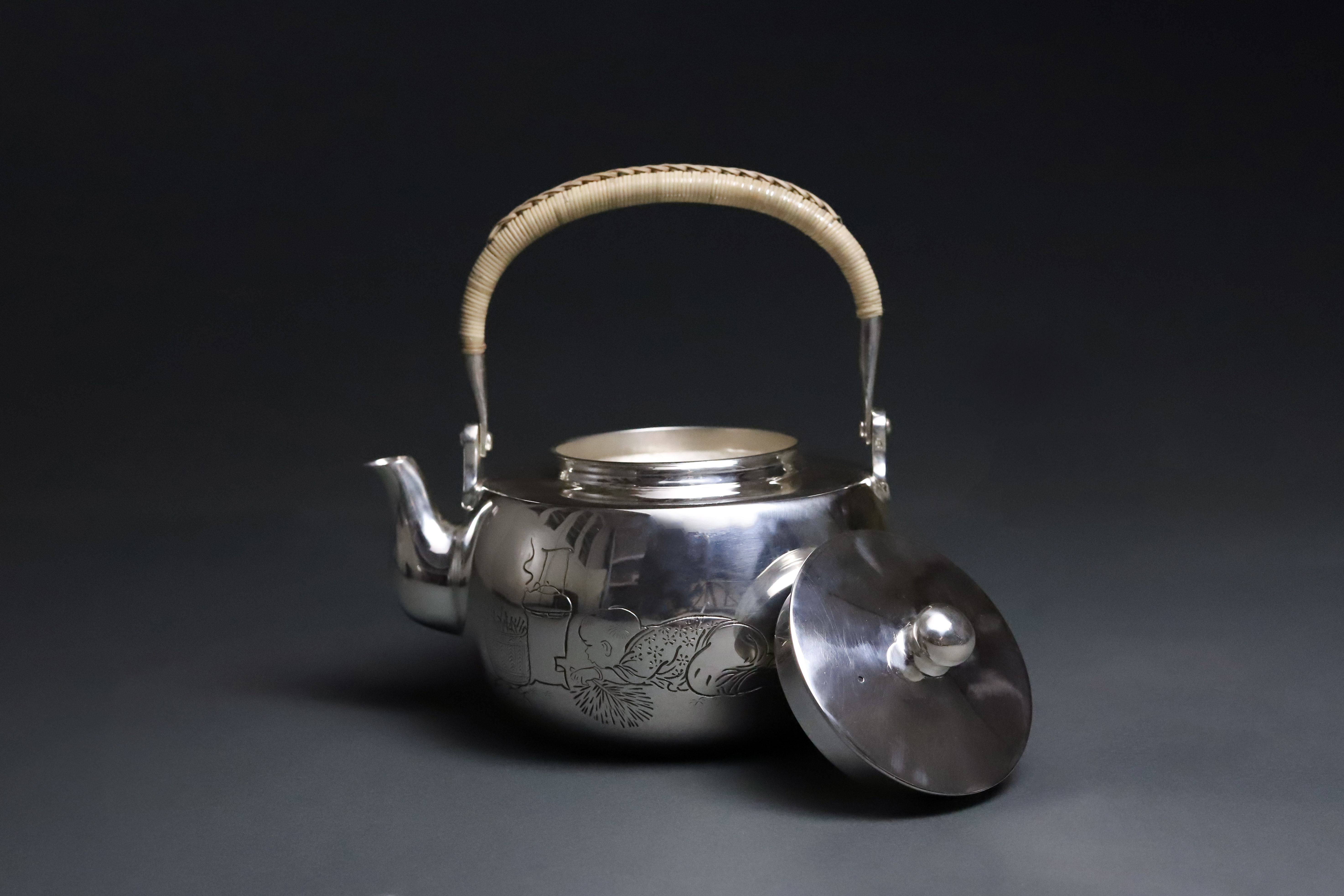 镜面壶,弯嘴一张打,壶摘一张打,平雕。