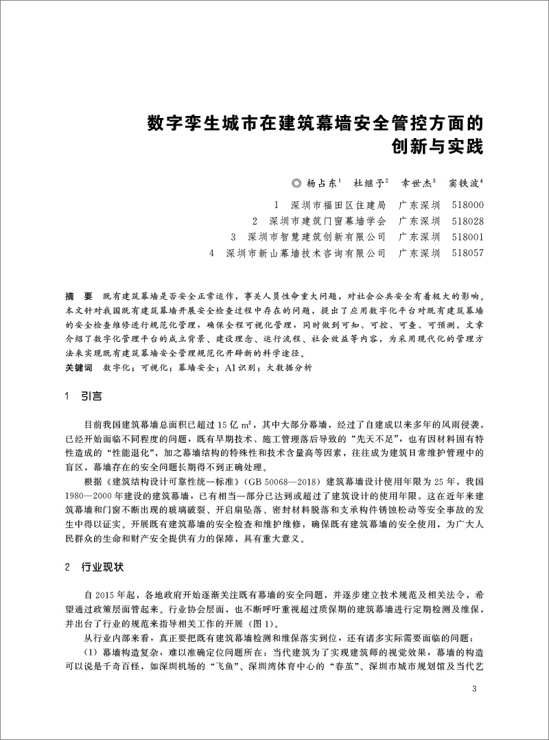 数字孪生城市在建筑幕墙安全管控方面的创新与实践杨占东杜继予幸世杰窦铁波