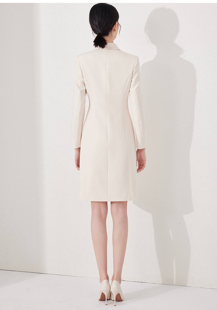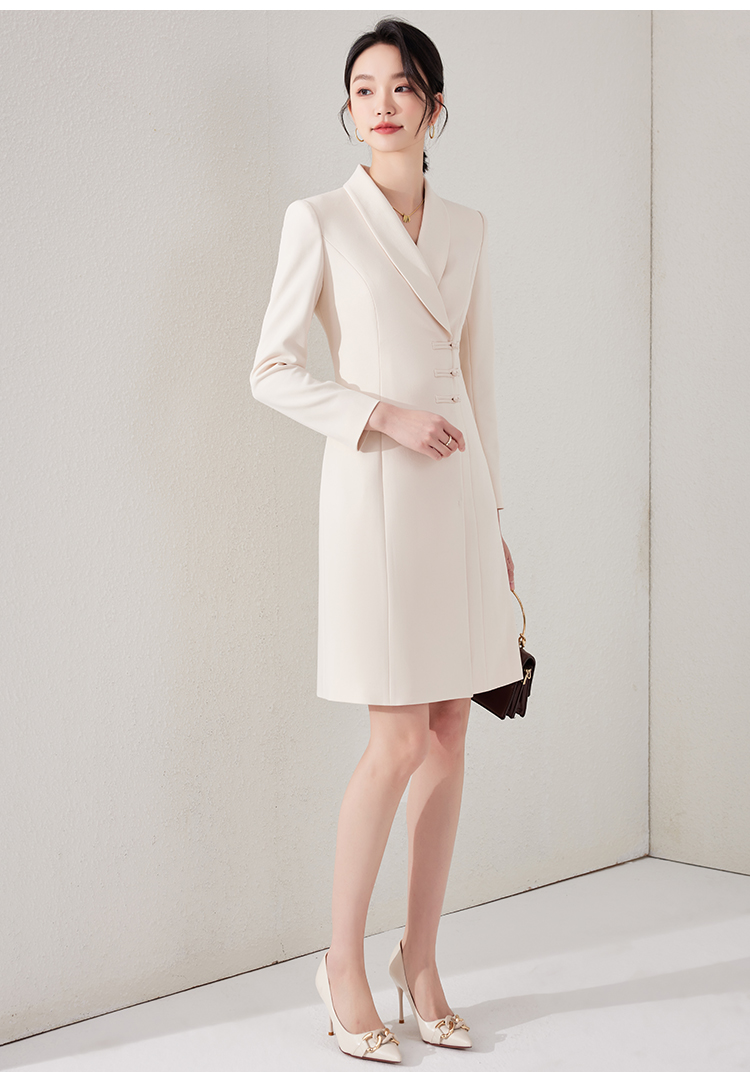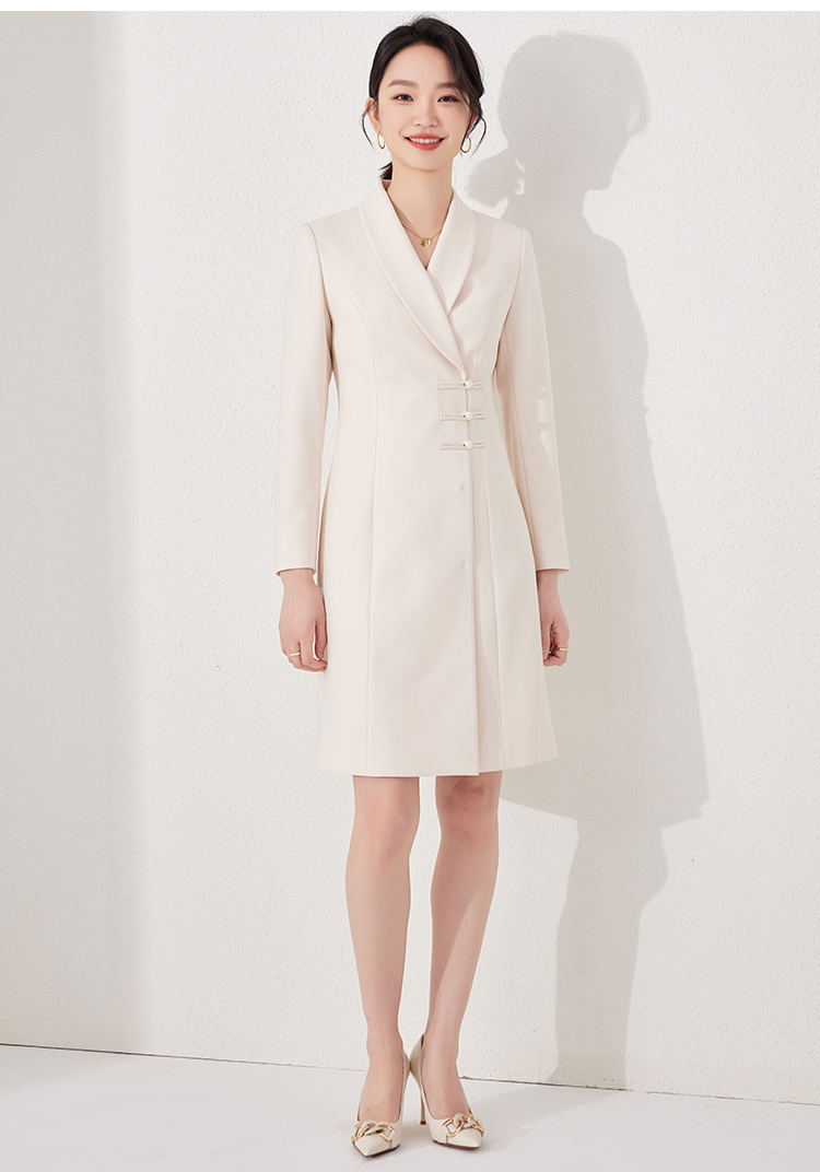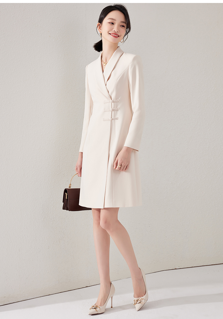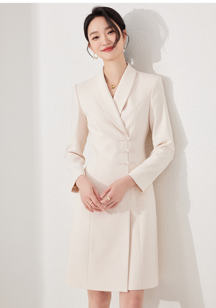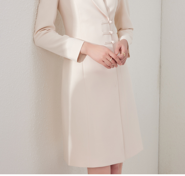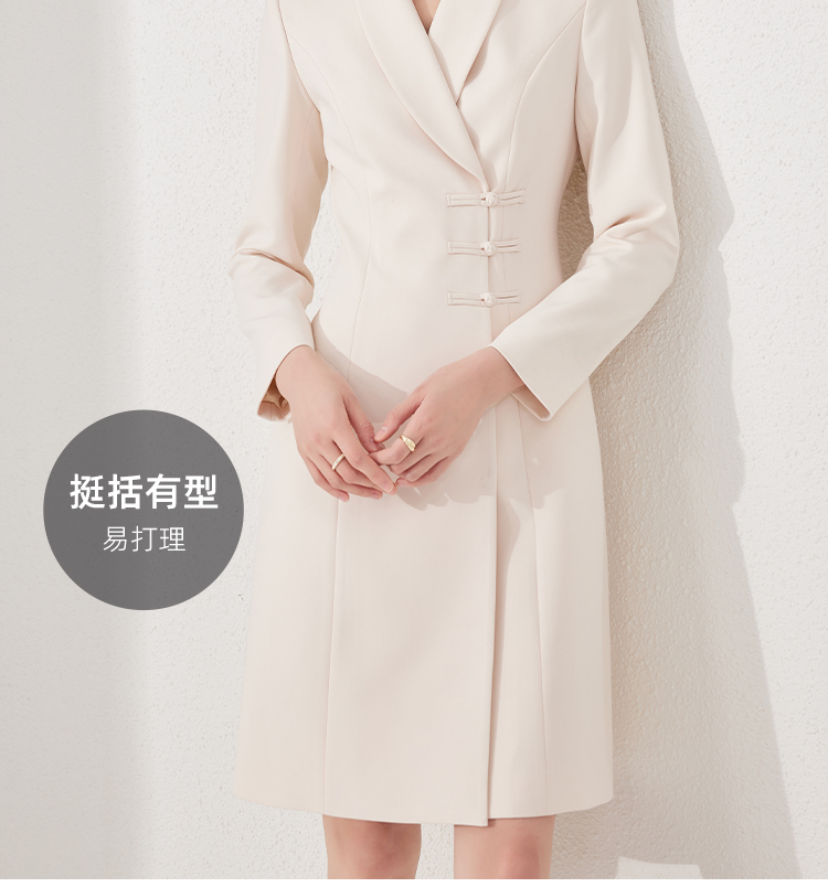 艾尚臣气质主持人长袖青果领连衣裙正式场合正装新中式小A裙盘扣