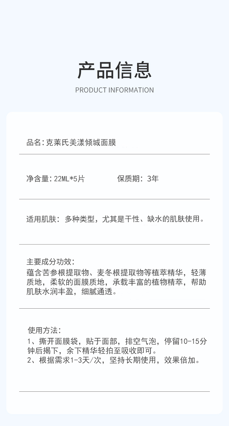 克莱氏美漾倾城面膜22ml*5