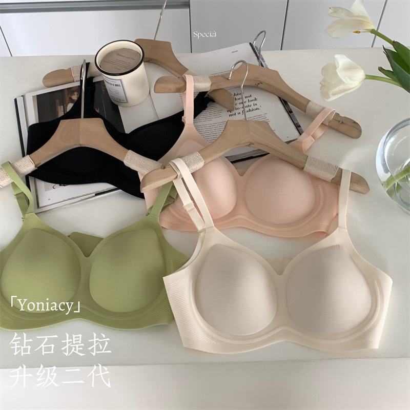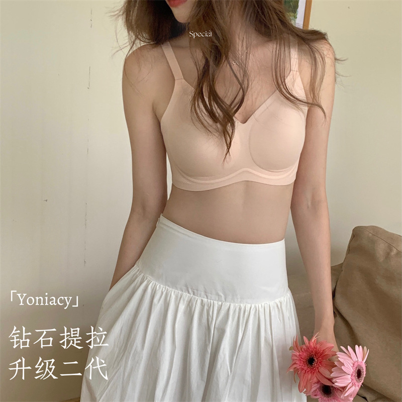 【钻石提拉】升级二代果冻条安心内衣女无钢圈小胸聚拢胸罩收副乳不跑杯调整型文胸透气薄款