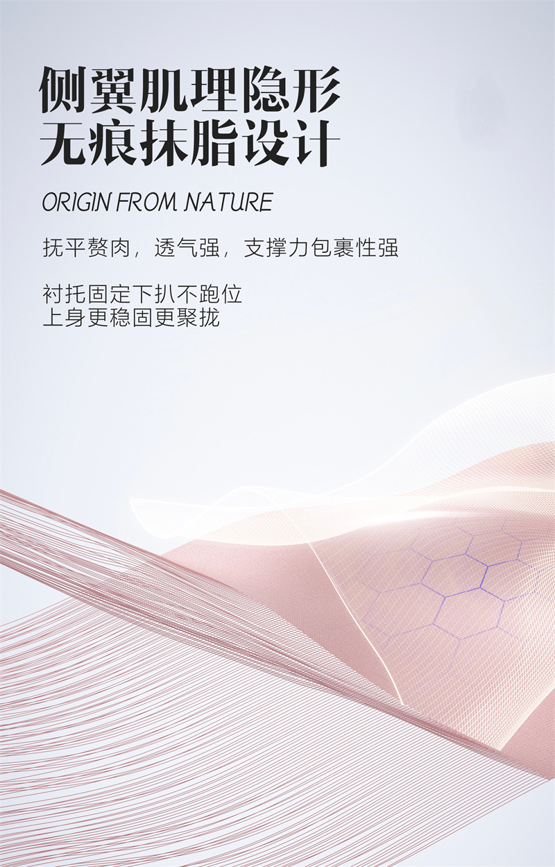 ❺ 侧翼肌理隐形无痕抹脂设计,抚平赘肉,透气强,支撑力包裹性强,衬托固定下扒不跑位,上身更稳固更聚拢。