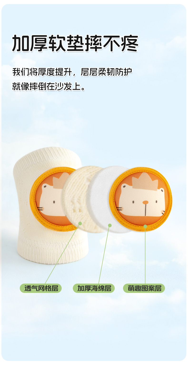 【网眼透气 柔软舒适 不易起球】春夏新品婴儿护膝新款儿童学步护膝爬行神器宝宝松口长筒袜套