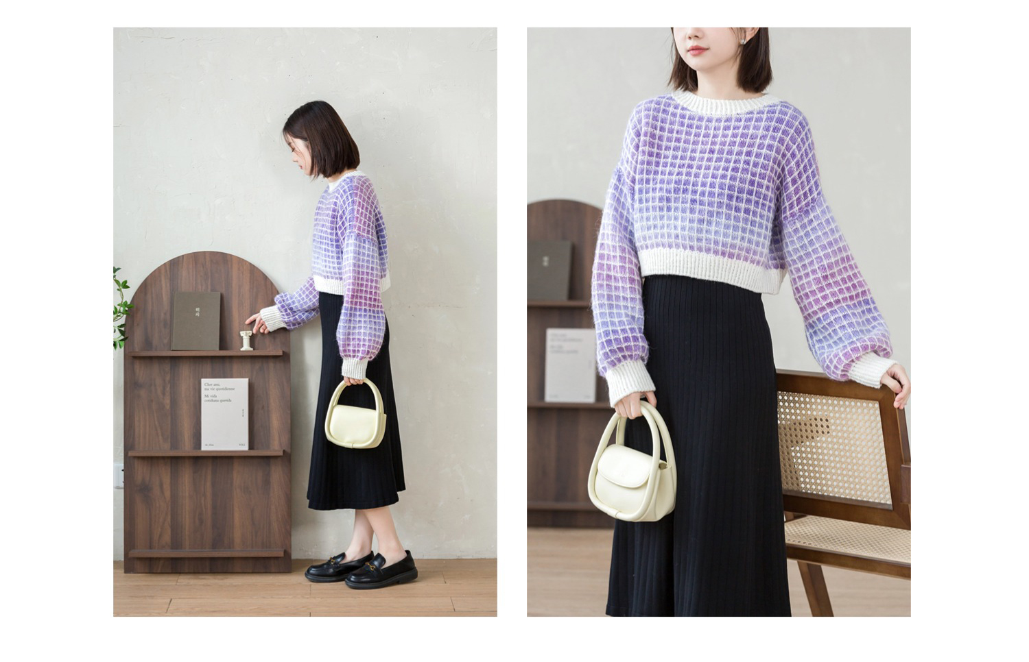 苏苏姐家泡泡糖格子毛衣手工 编制自制DIY材料包毛线团打发时间