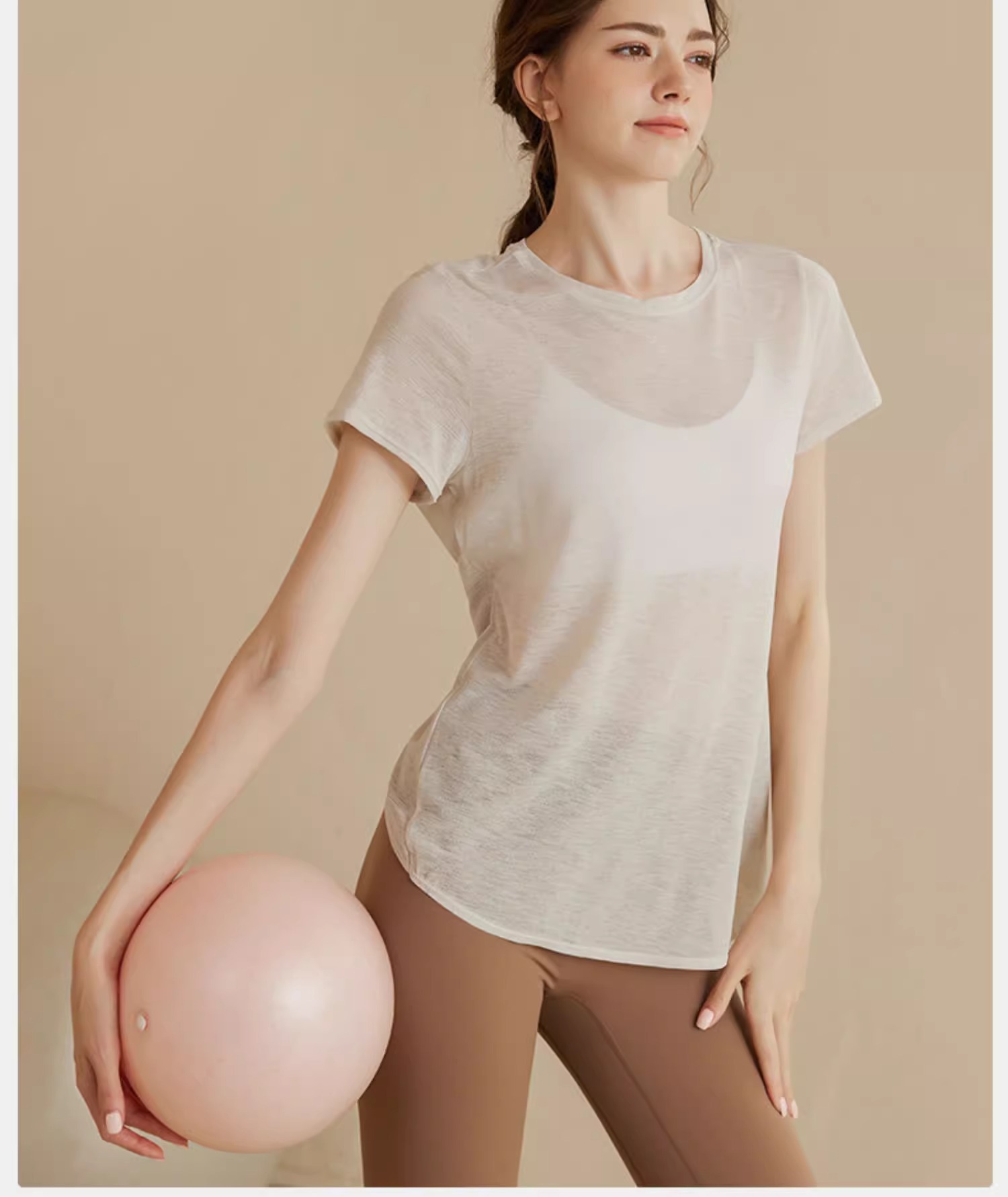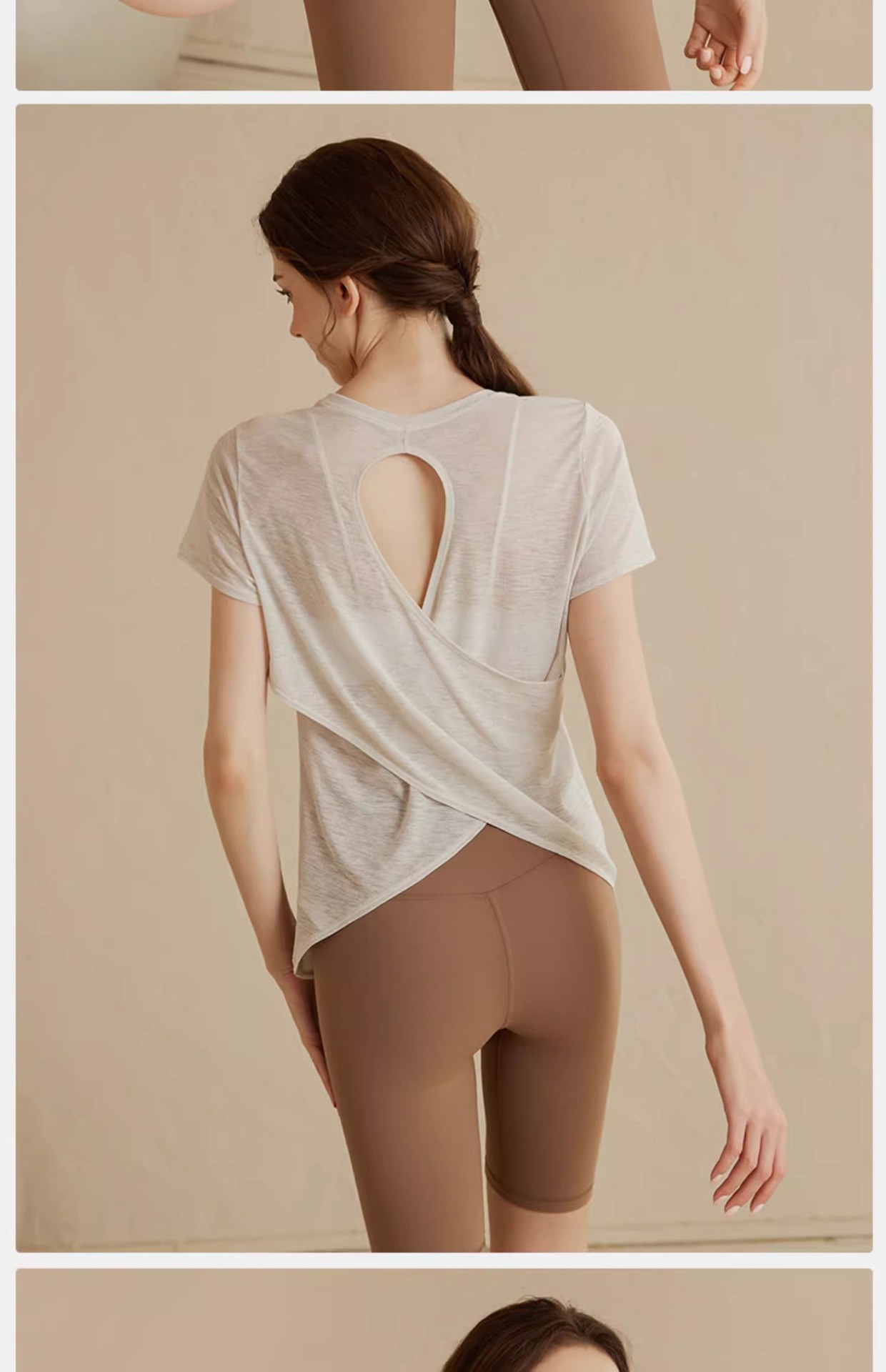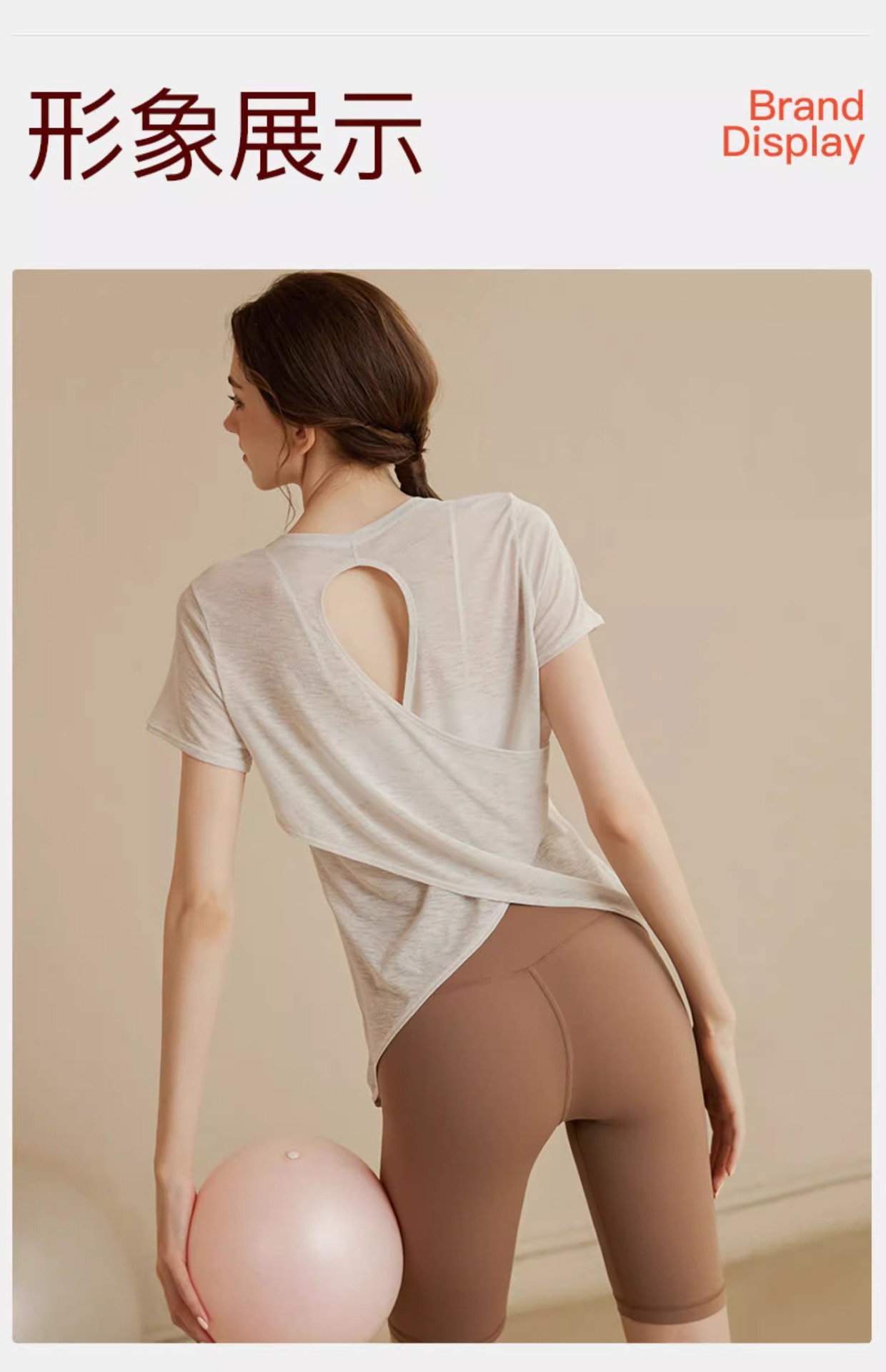 夏季瑜伽服罩衫女运动短袖跑步宽松速干透气健身服上衣 KML 000 TX41025