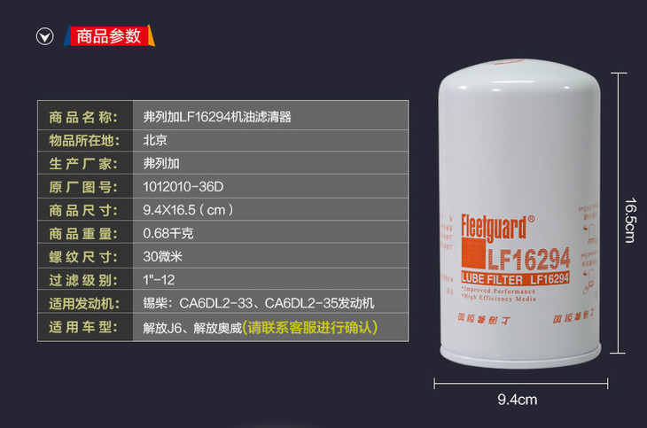 弗列加 LF16294机油滤清器 锡柴CA6DL2 卡车之家