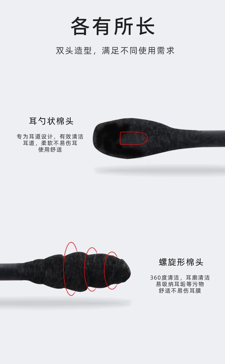 日本kinbata双头脱脂棉棒耳朵棉花棒黑白下单随机送出