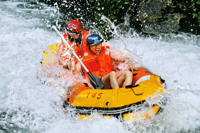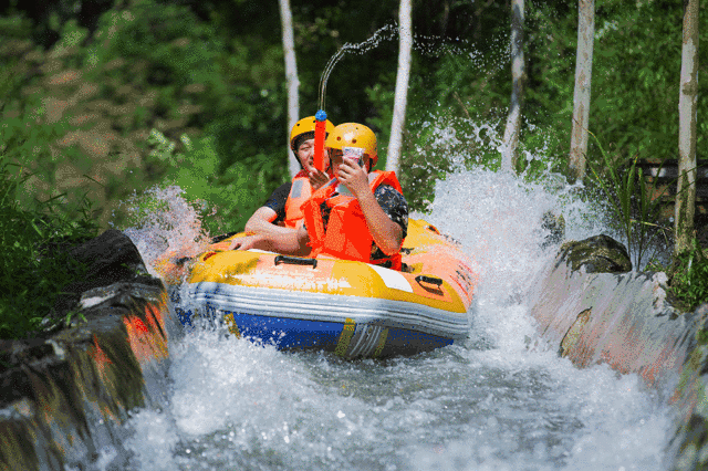 1.感受矿泉水上的“过山车”——深溪峡谷漂流区别于人工漂流,坚持以天然山泉水和自然水流渠道为特色,是安吉漂流中品位高刺激度强、生态佳的天然漂流河道之一