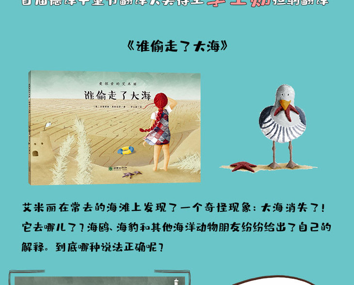 安德丽娅•莱特迈耶用《谁偷走了大海》这本具有吸引力的图画书,成功地探讨了每个孩子,甚至一些成年人都曾经提出过的问题。这本书以富有想象力又深入浅出的方式,解释了涨潮和退潮是怎样发生的,令人阅后难忘。——[德国] 文学提示网