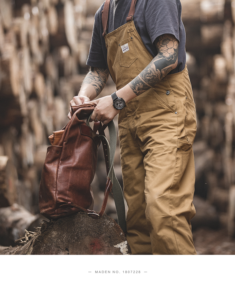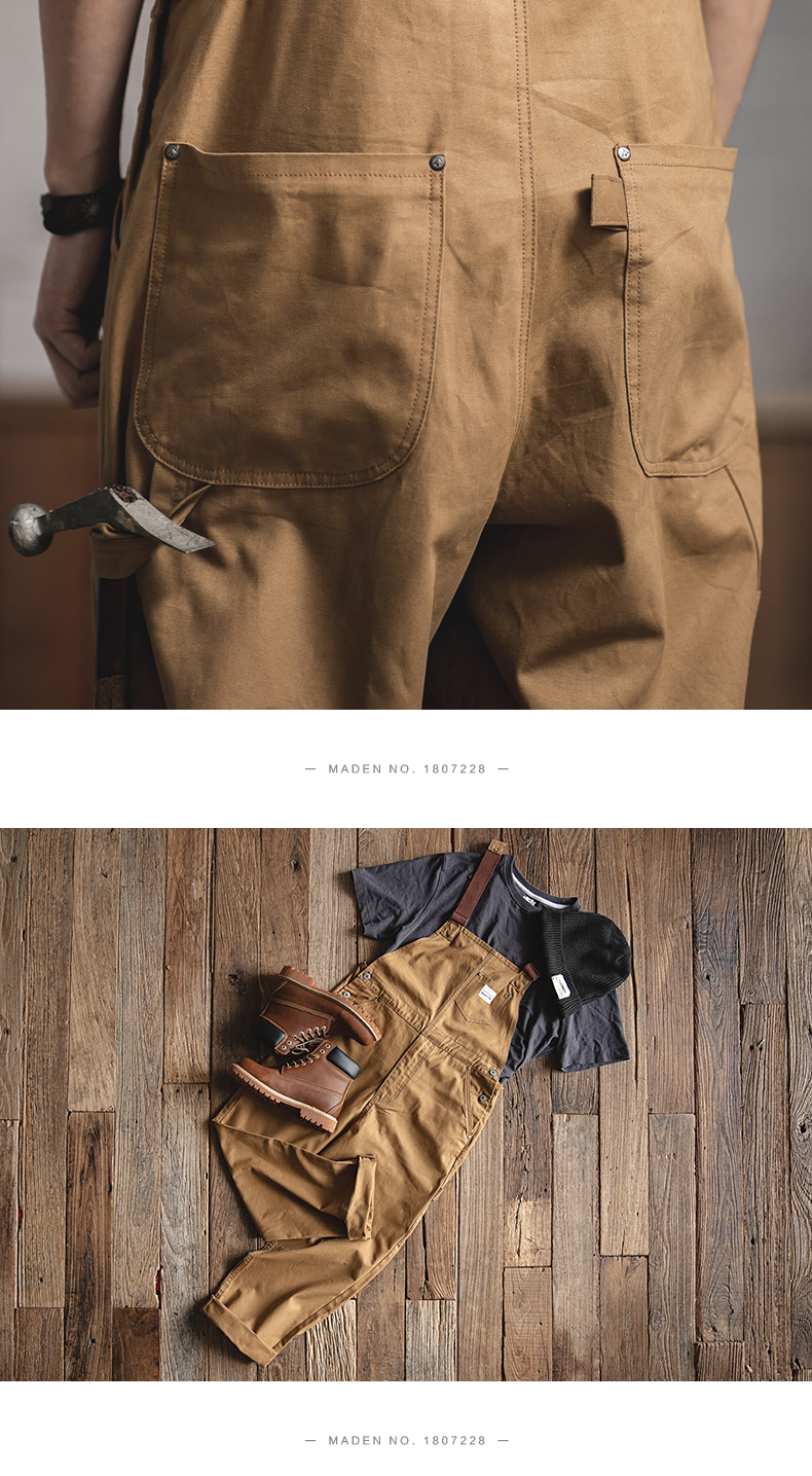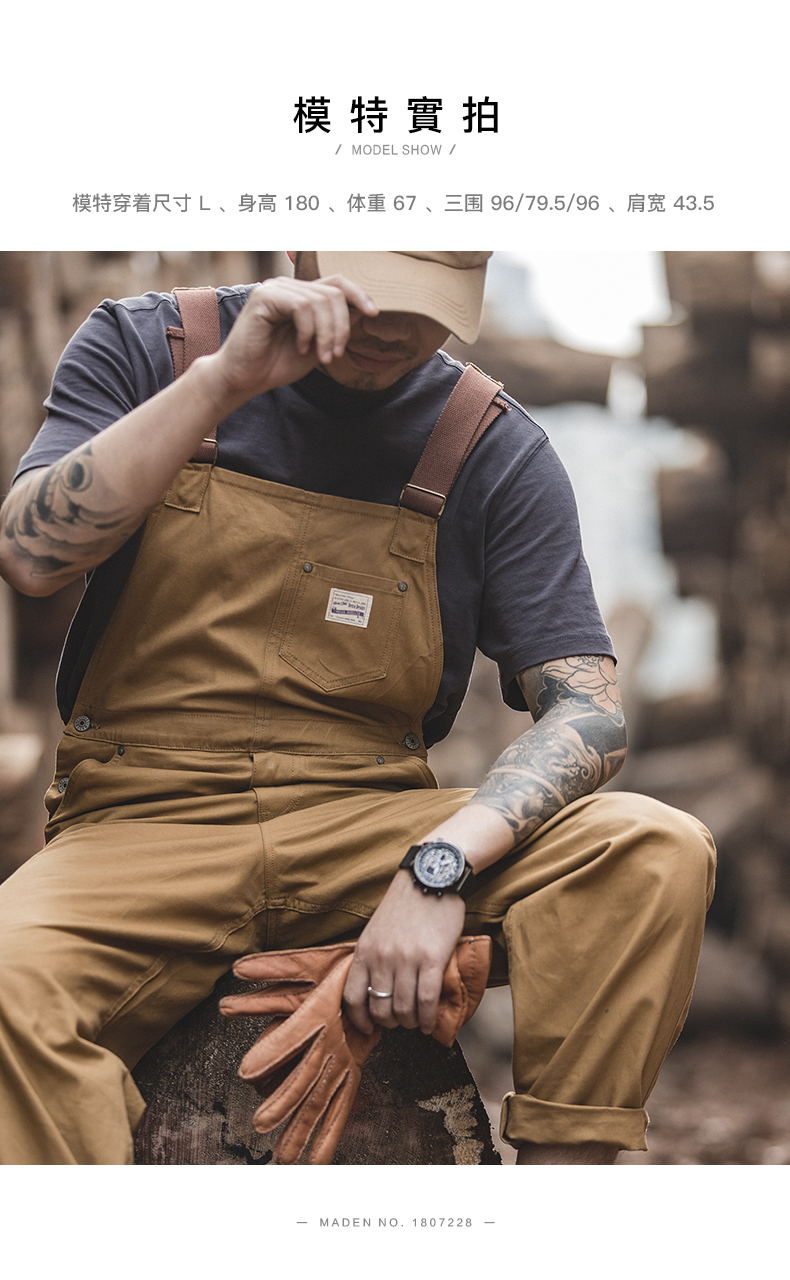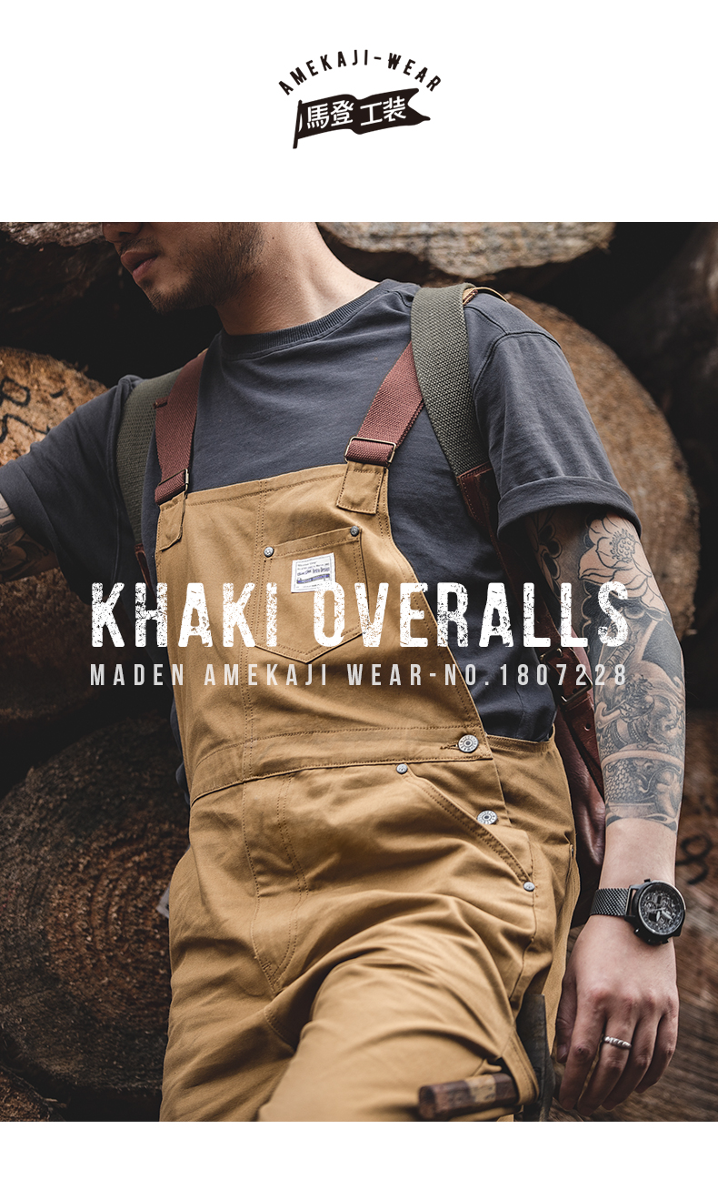 工装优选 美式复古卡其色背带裤春阿美咔叽经典复刻帆布吊带裤男