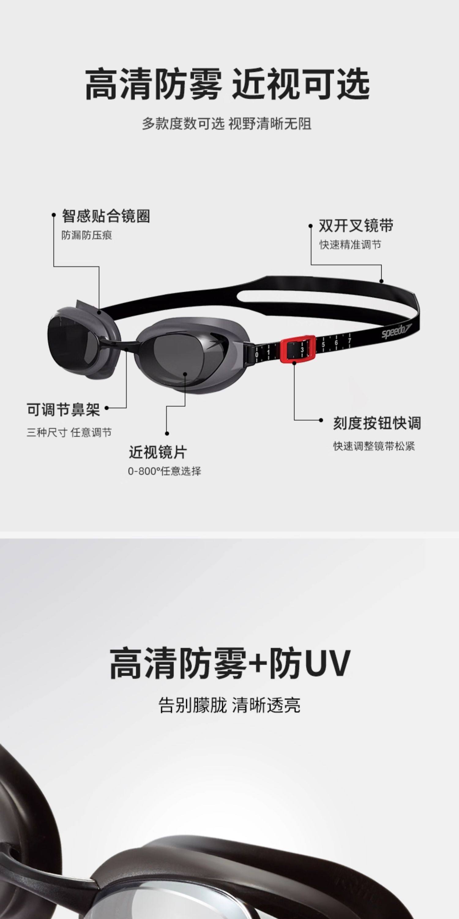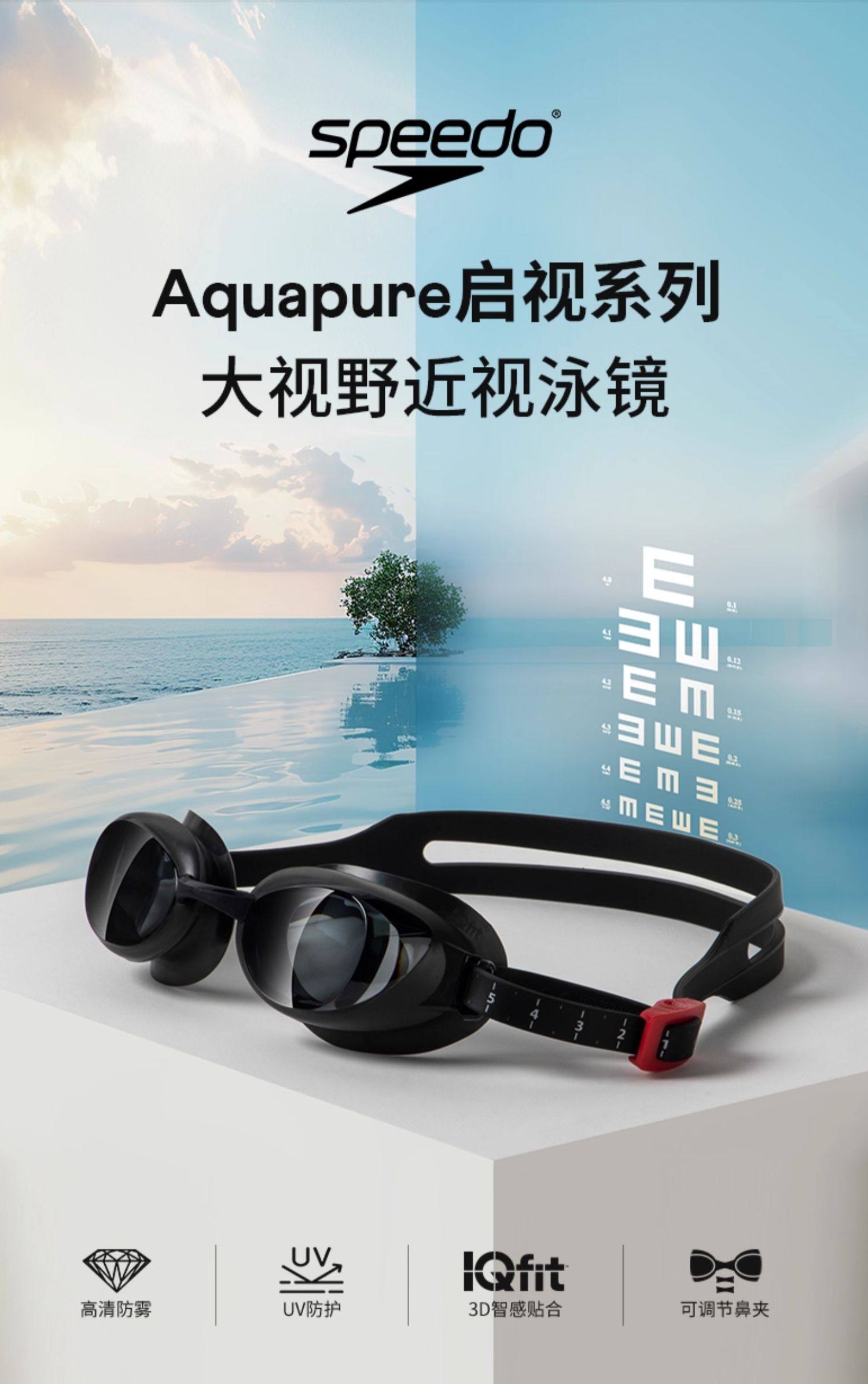 【近视泳镜】Speedo/速比涛启视 口碑推荐专业防水防雾高清可换鼻架可换度数近视泳镜男女