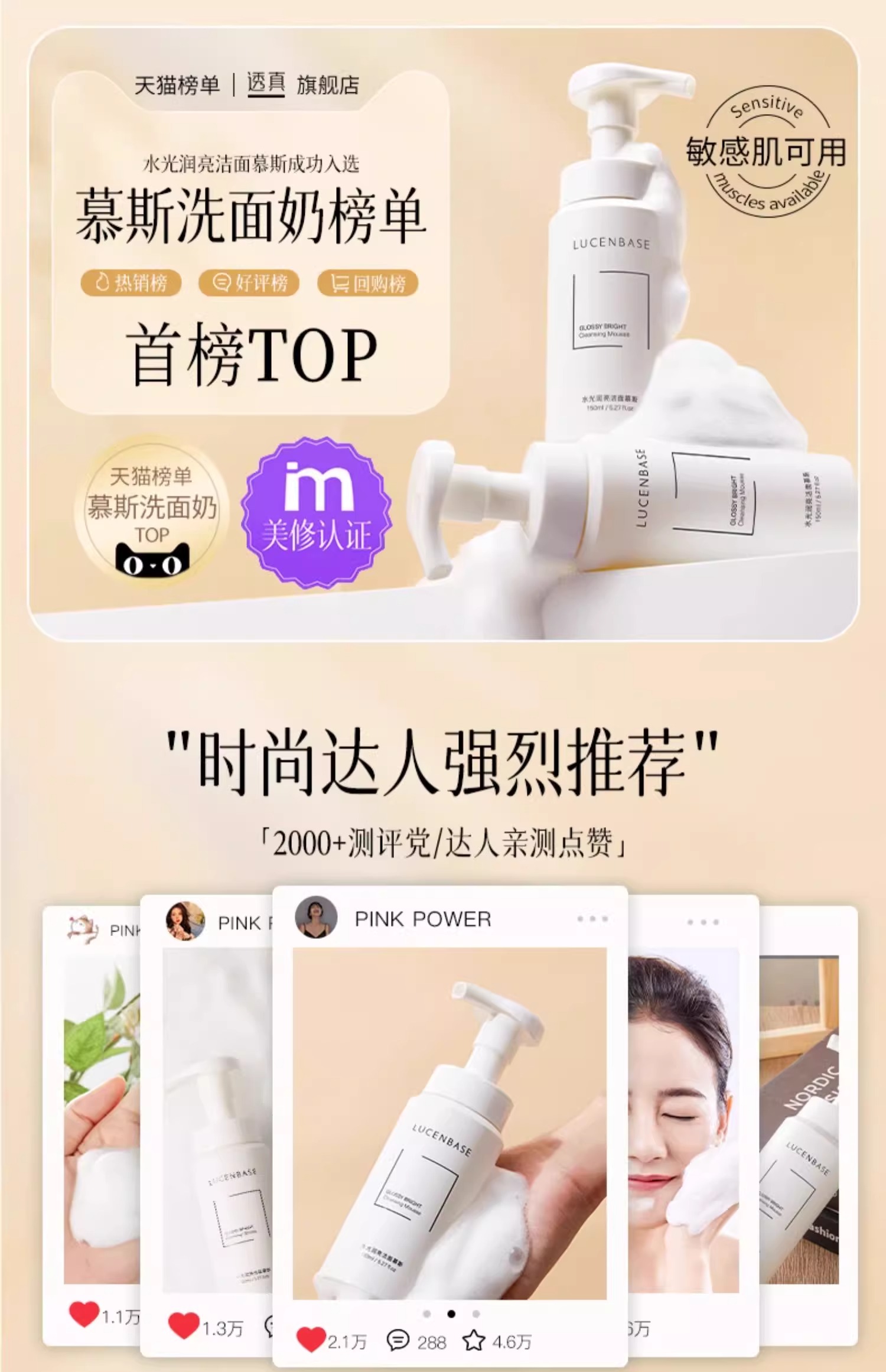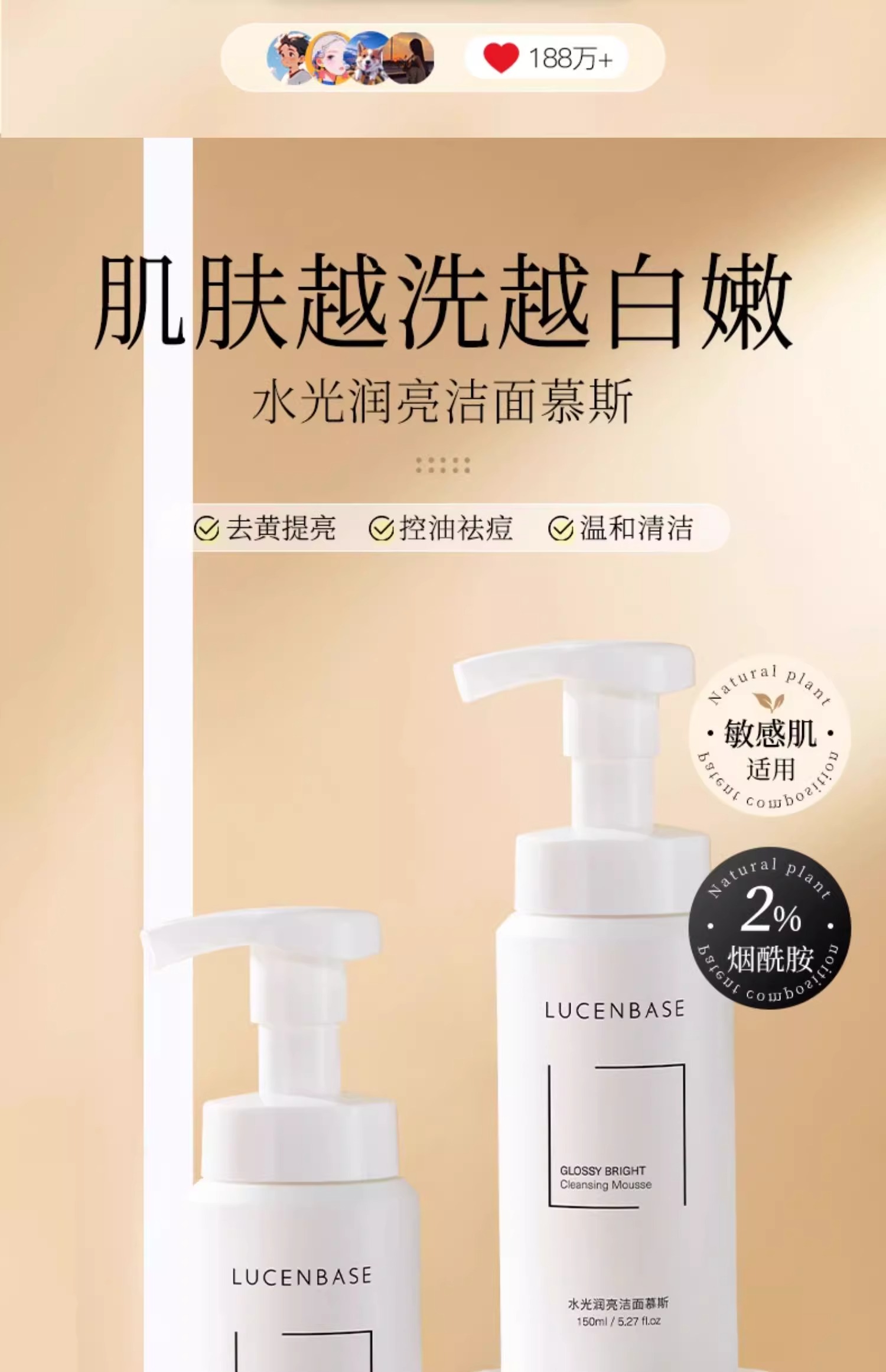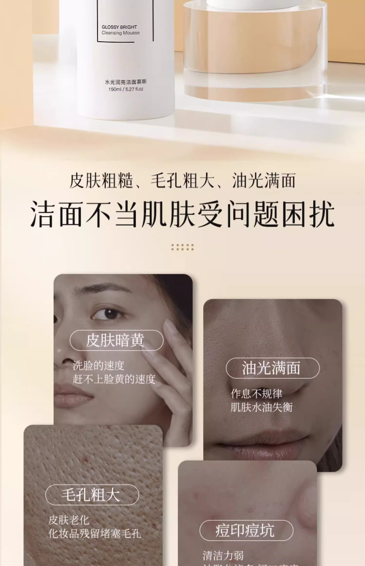 【黄黑皮救星 肌肤越洗越亮】水光润亮洁面慕斯 150ml#氨基酸洗面奶男士专用洁面乳女深层清洁收缩毛孔控油泡沫洁面慕斯