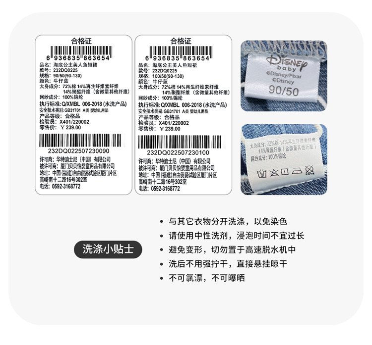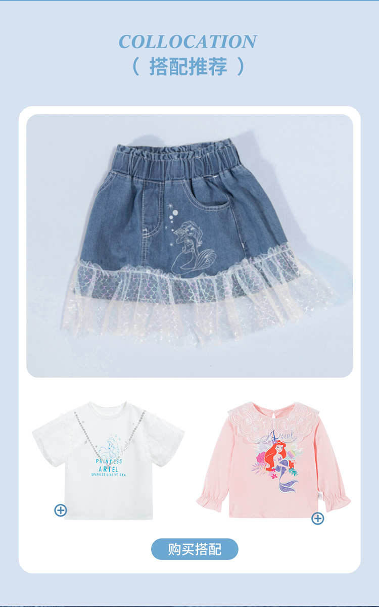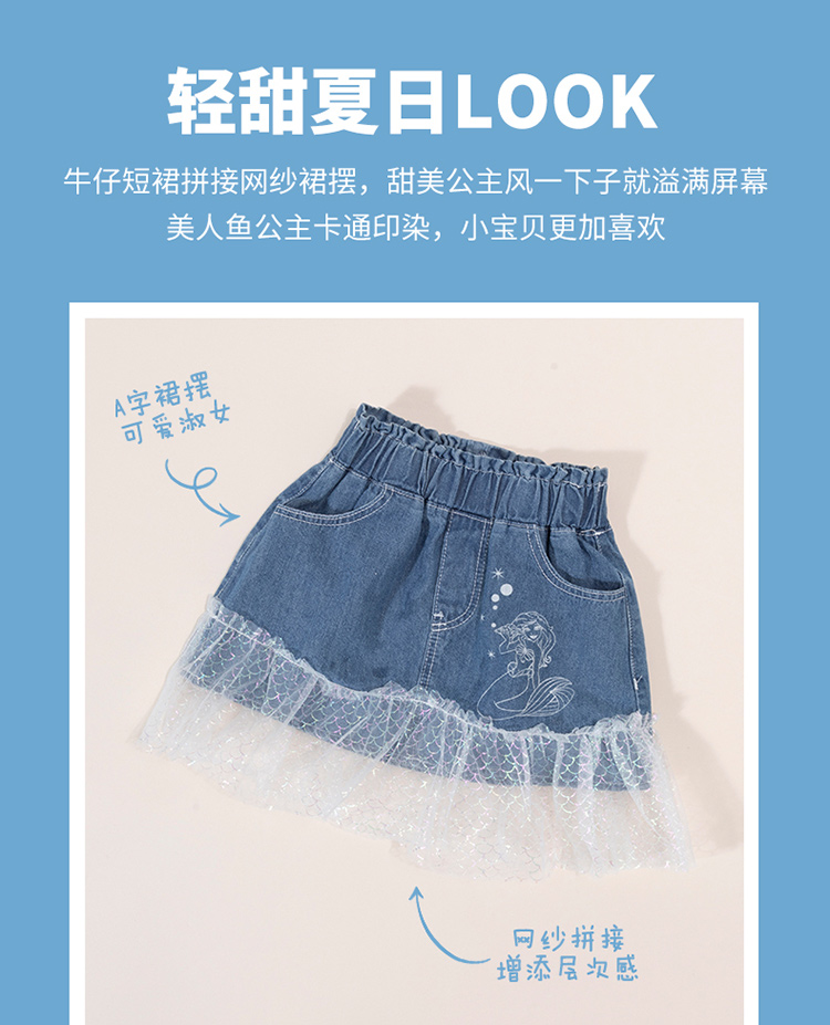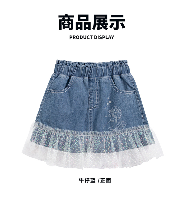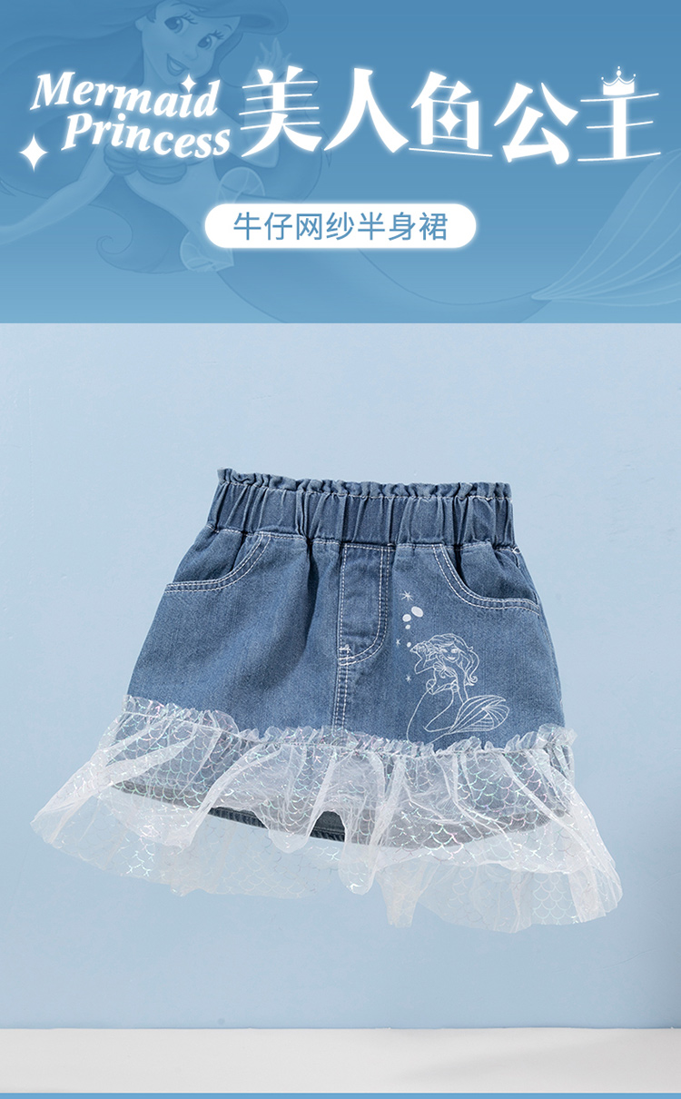 【商城同款】迪士尼女童美人鱼牛仔网纱半身裙232DQ0225