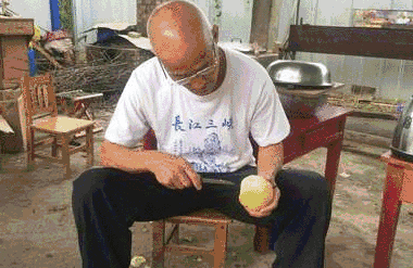 两位老人要留我们吃午饭,只是看着这简陋的环境,实在不忍给他们添麻烦,我们只好摆了摆手。一再婉拒之下,李大爷又拿起一个梨子,给我们削皮。
