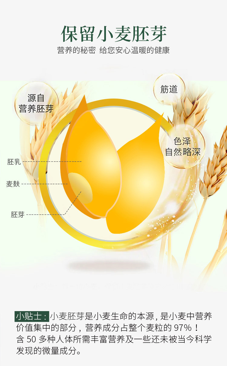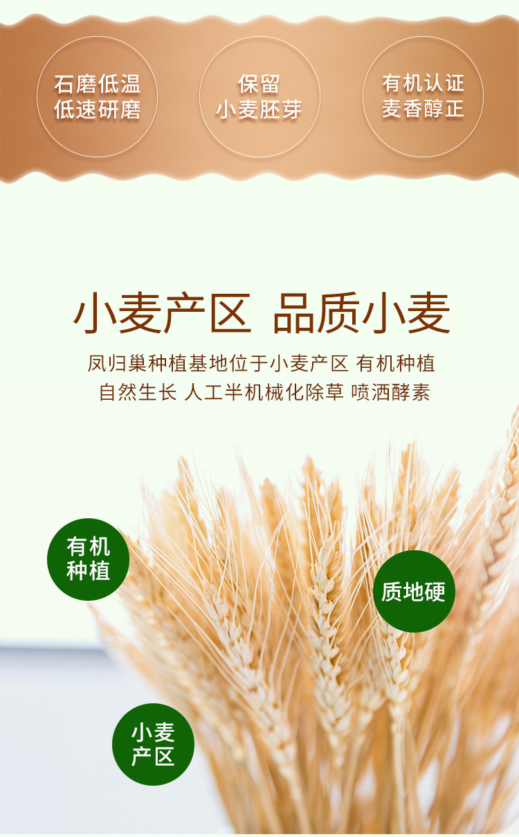 凤归巢 有机石磨小麦胚芽面粉 含胚芽麦麸保留小麦的原汁原味 面食口感柔韧 麦香浓郁 一袋2.5kg