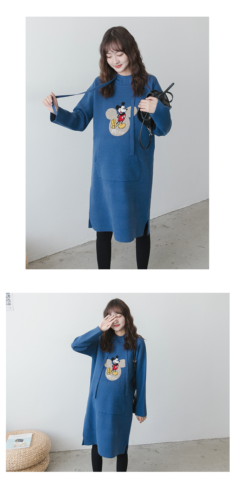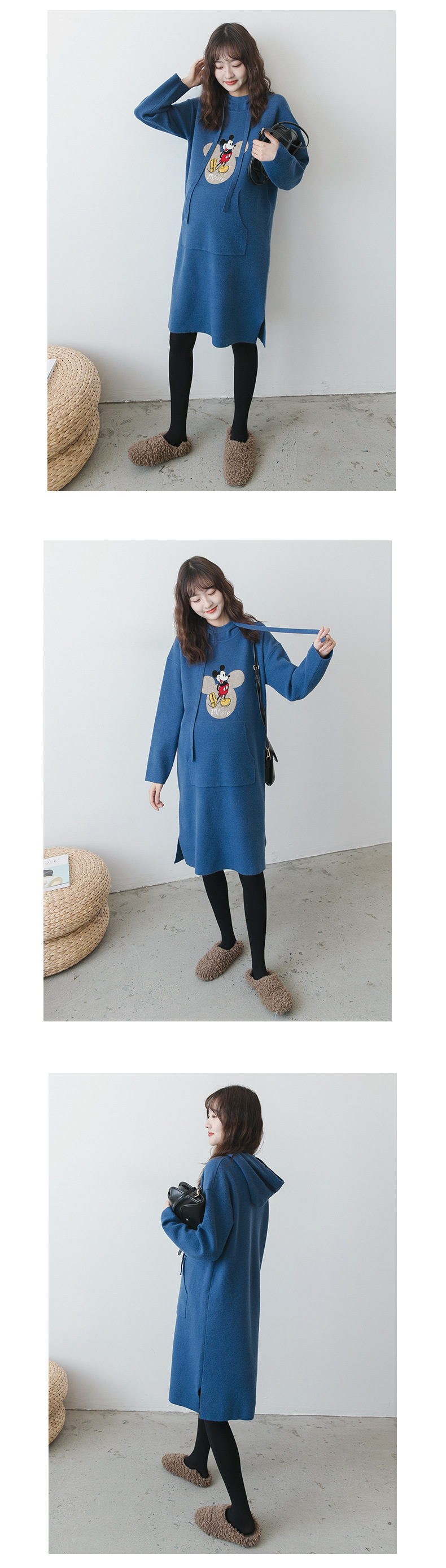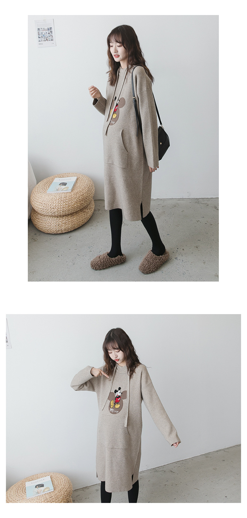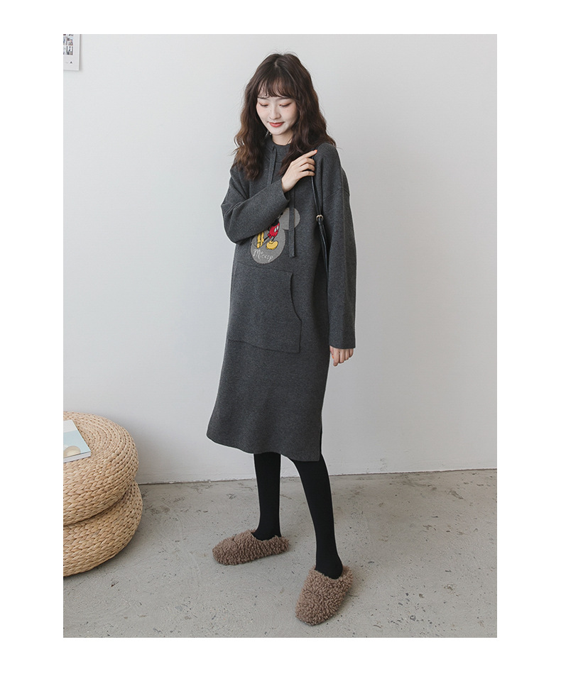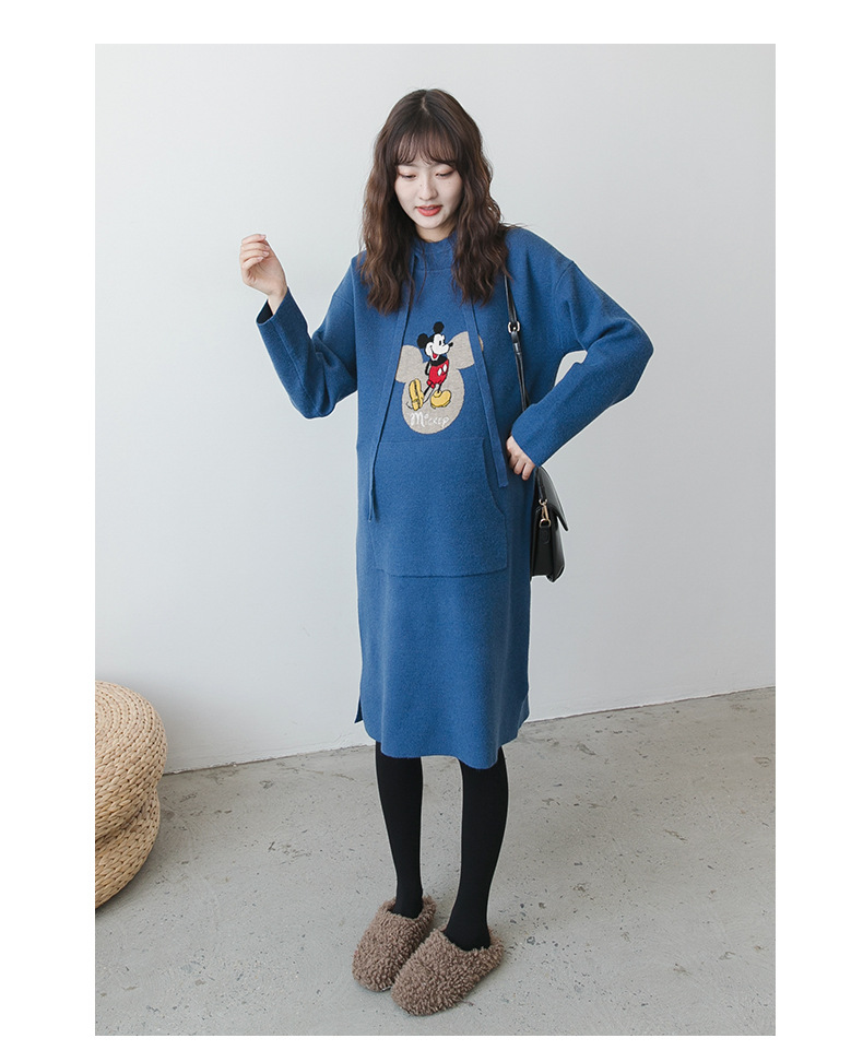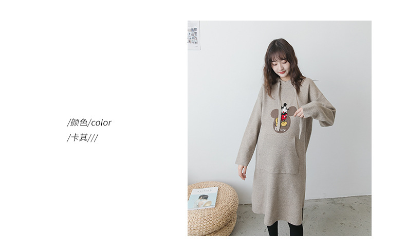 【做绝美“孕妈”】秋冬款孕妇装韩版连帽毛衣时尚卡通减龄毛衣裙宽松大码上衣潮妈装