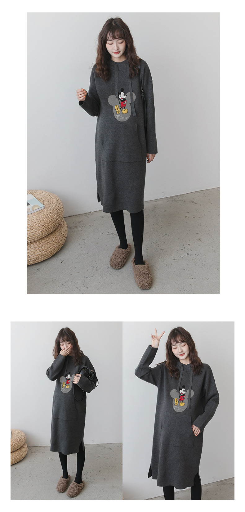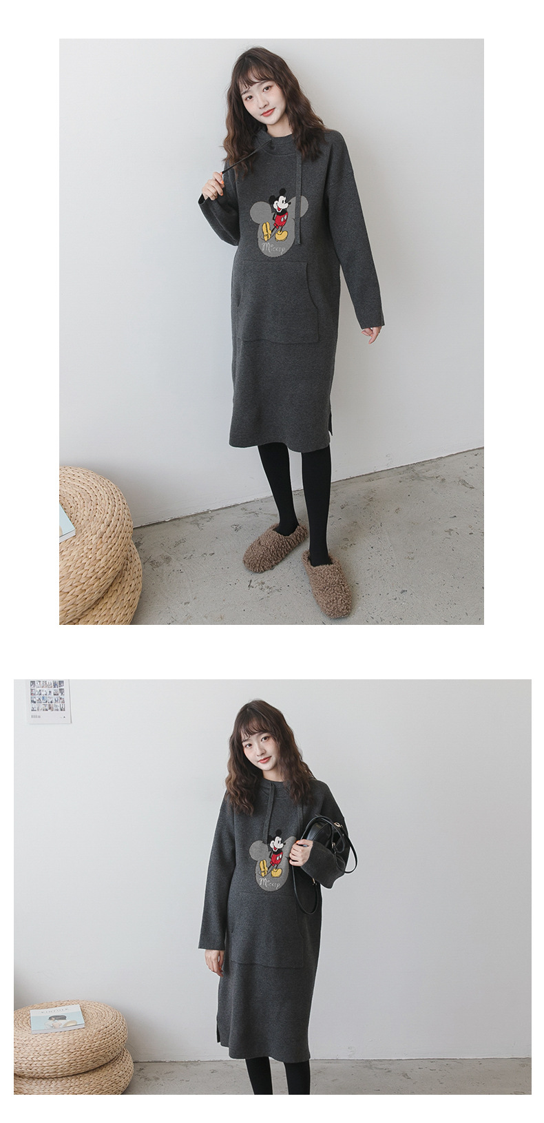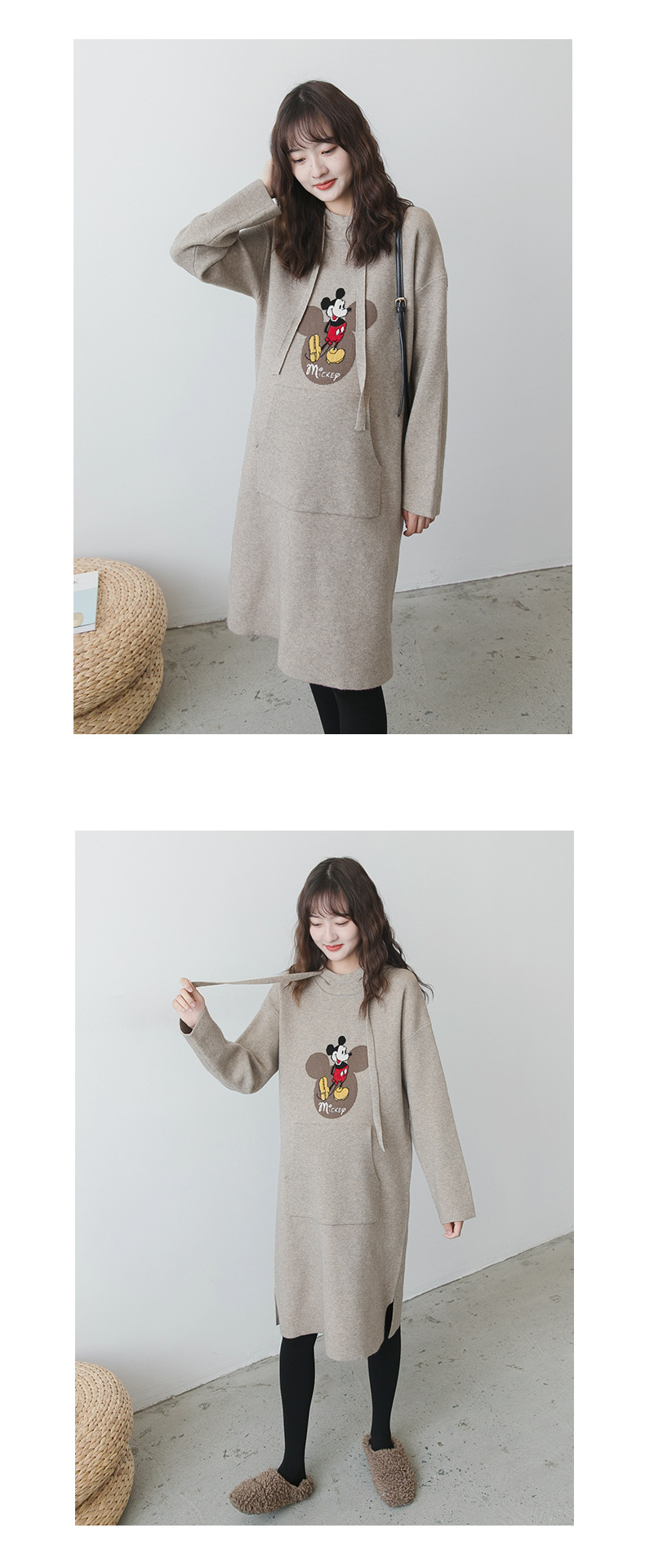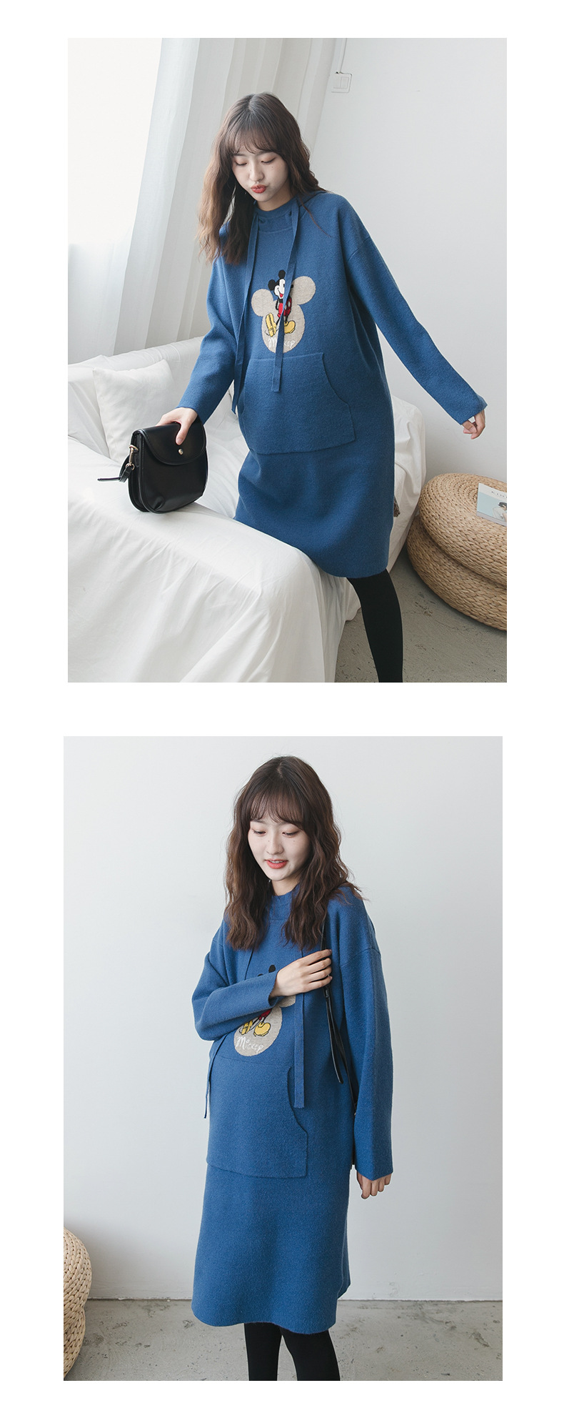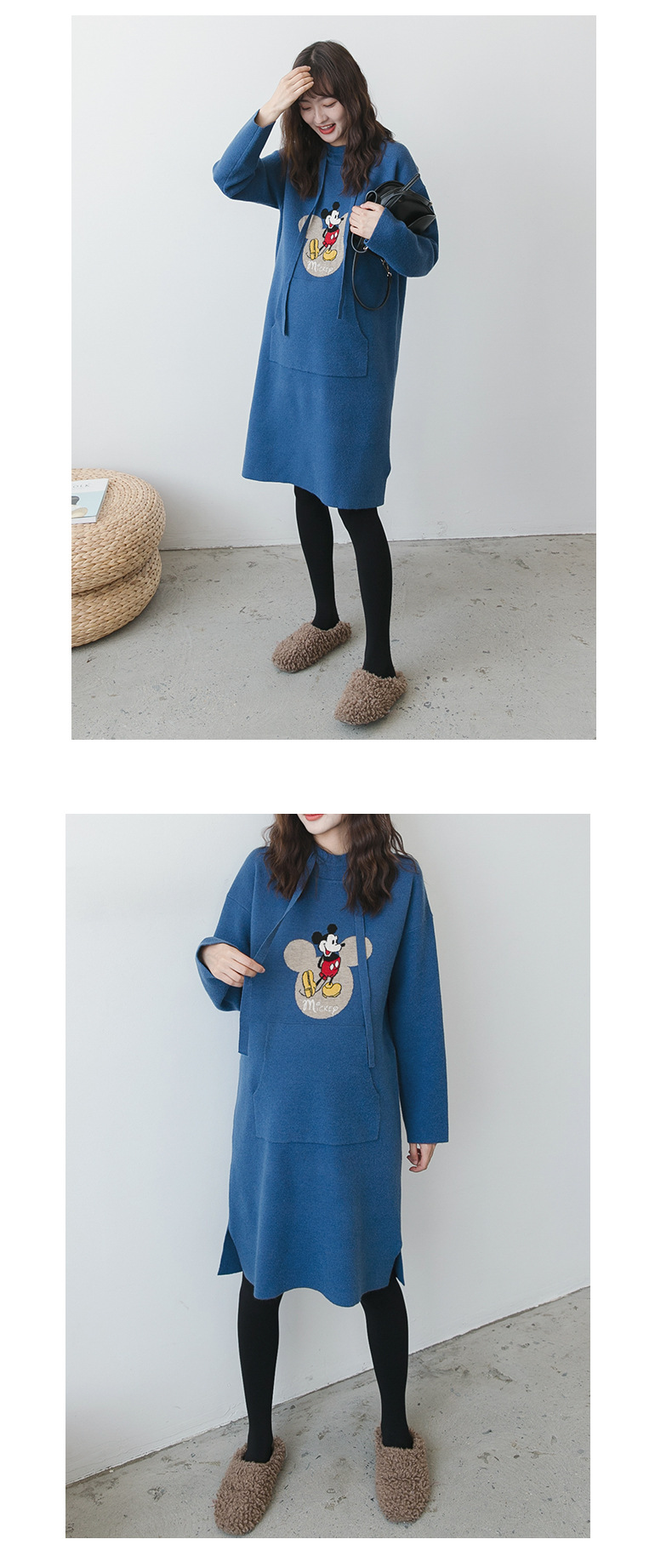 【做绝美“孕妈”】秋冬款孕妇装韩版连帽毛衣时尚卡通减龄毛衣裙宽松大码上衣潮妈装