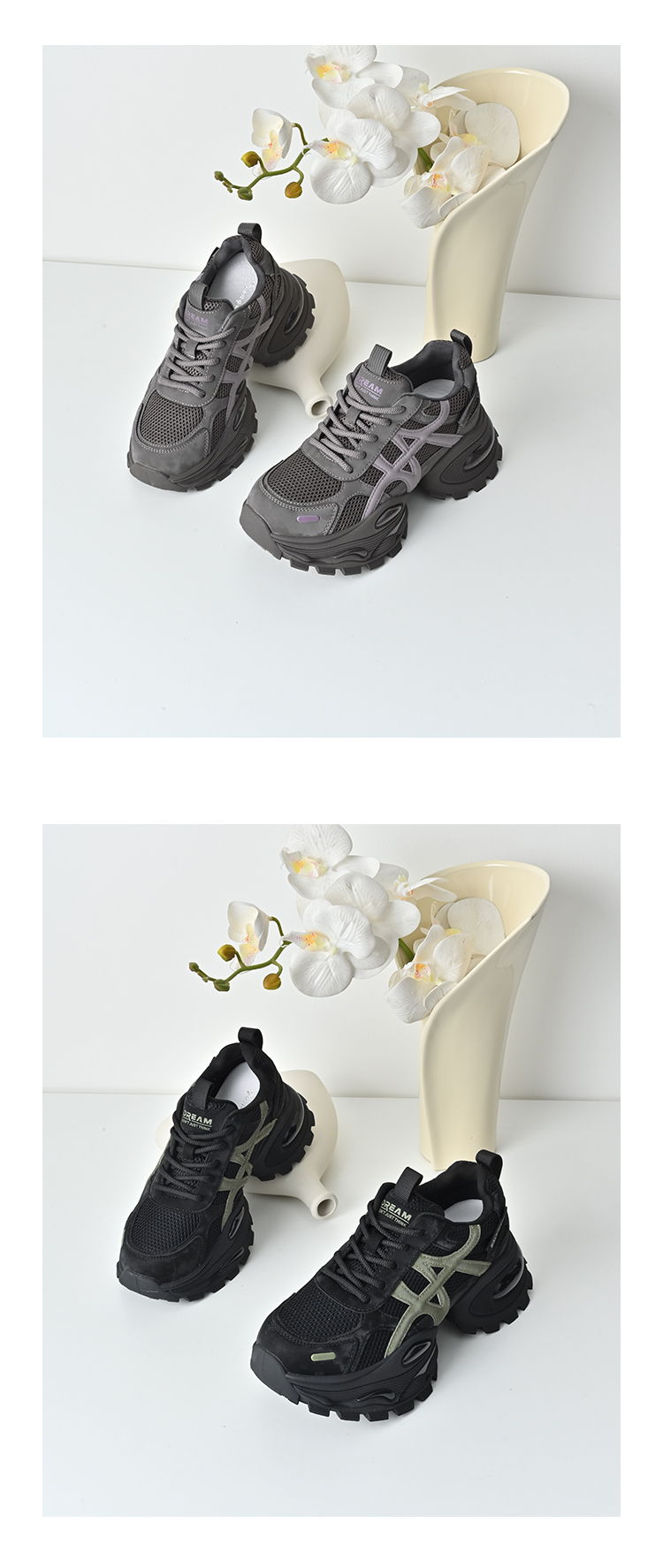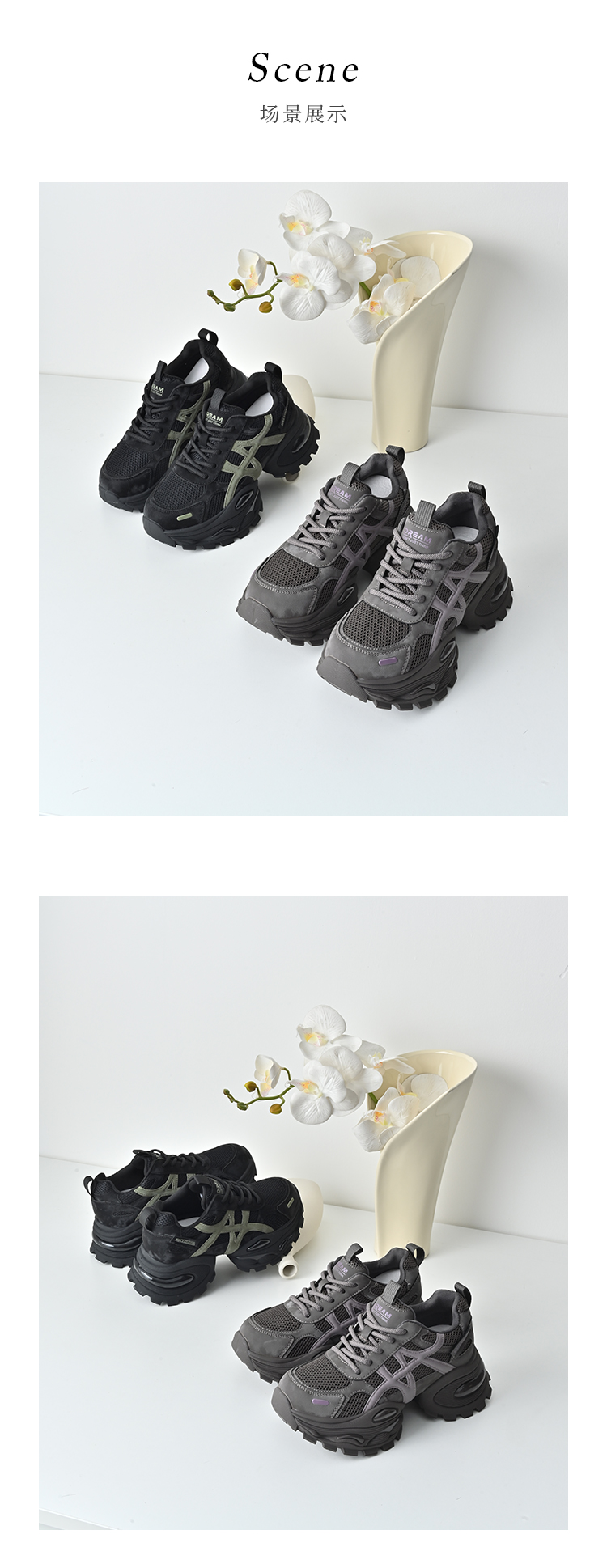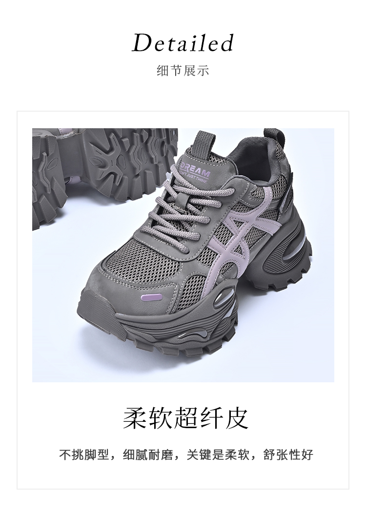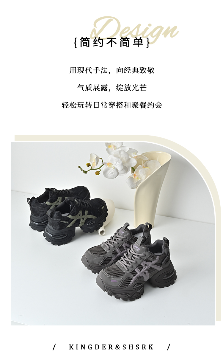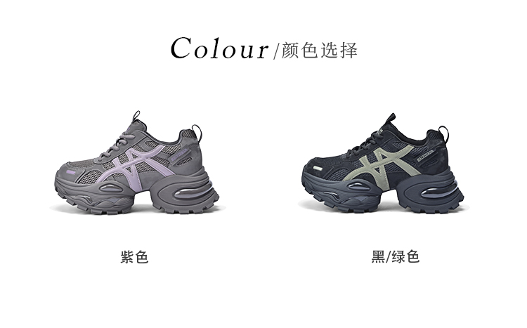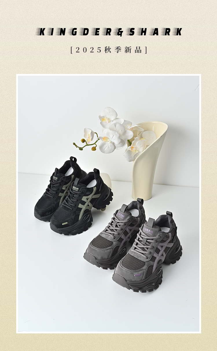 经典鲨2025秋季专柜新款潮酷拼色网面透气系带显高老爹鞋女KW219-537111