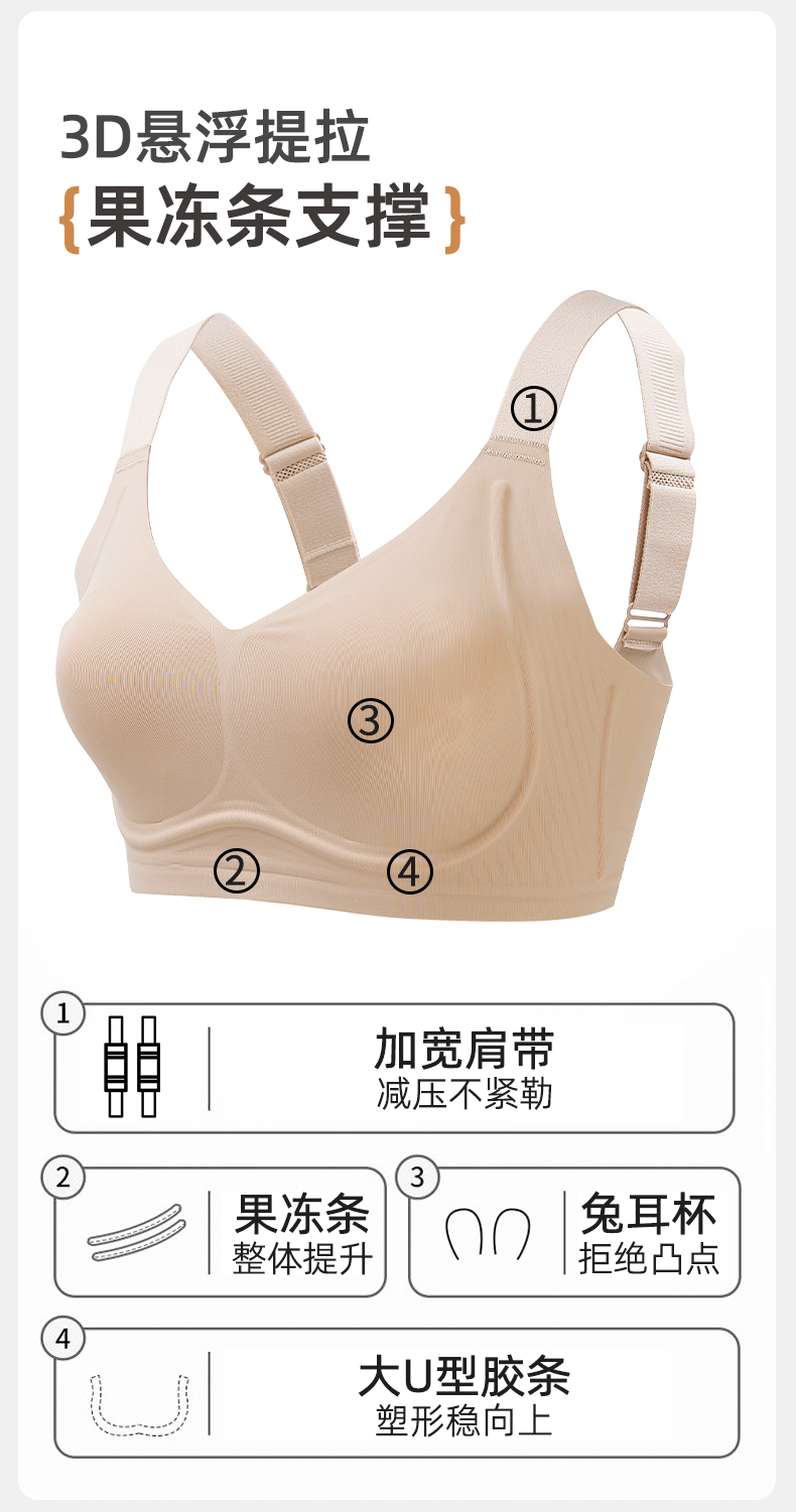 ALDOLA/雅黛俪内衣胸大显小兔耳杯提拉防下垂调整型文胸大码胸罩