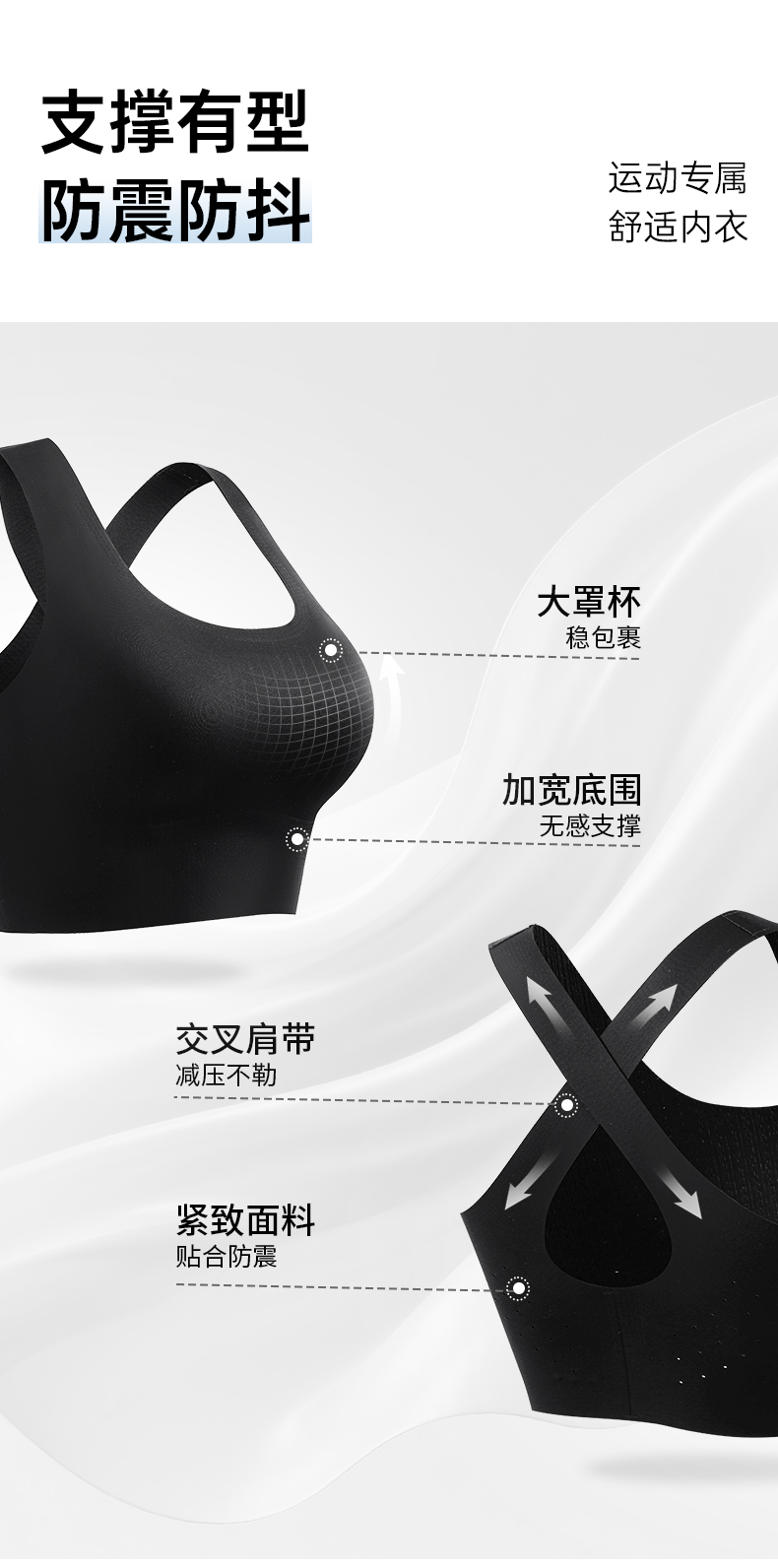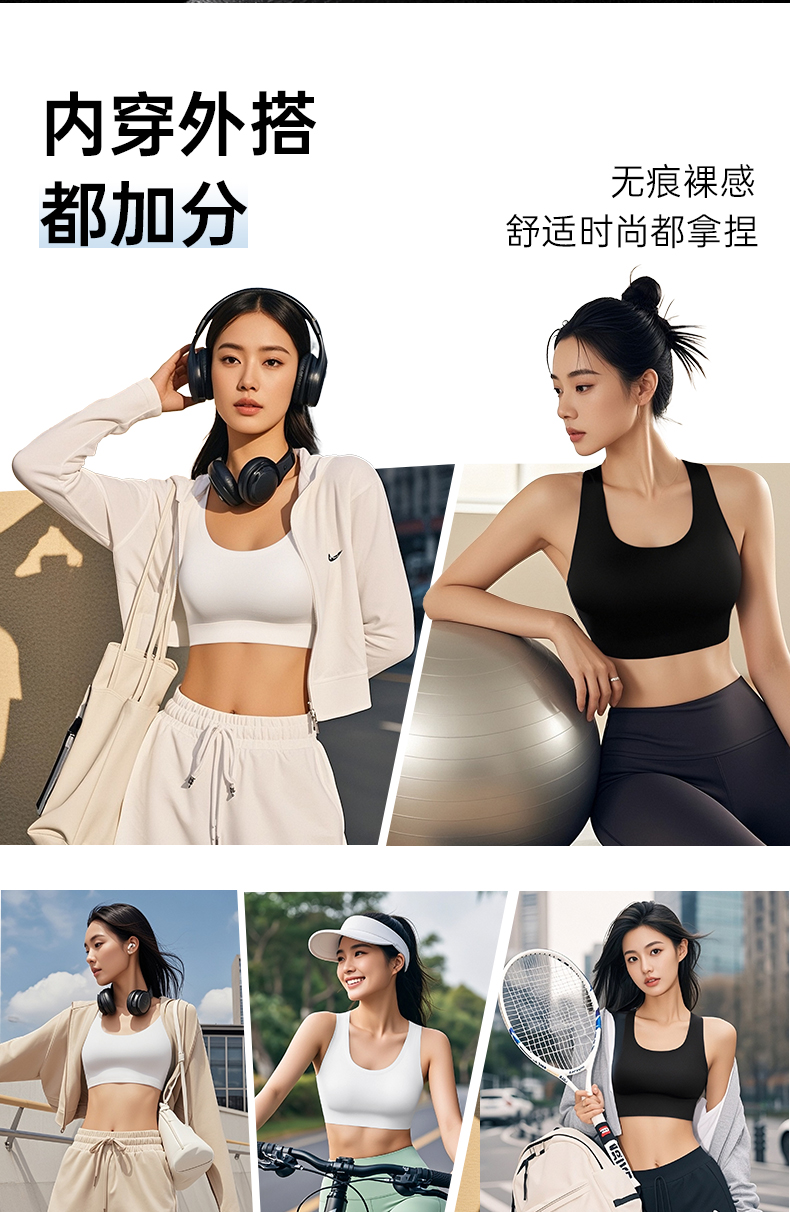 A1-【A-C杯】【运动文胸】润微高强度运动内衣女防震瑜伽背心一体式跑步训练健身文胸bra 零感光面