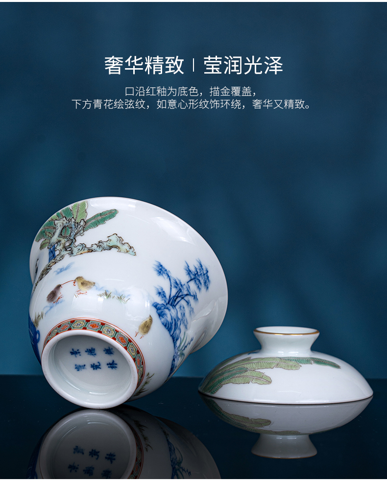 【宝瓷林】豆青墨彩山水小罗汉杯(已缺货)