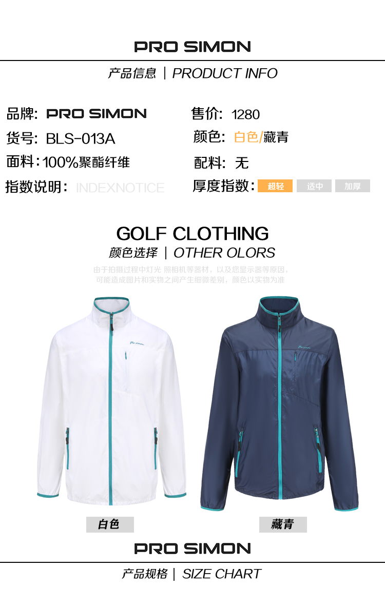 BLS-013A(PROSIMON高尔夫男款长袖轻薄拼接外套夹克)