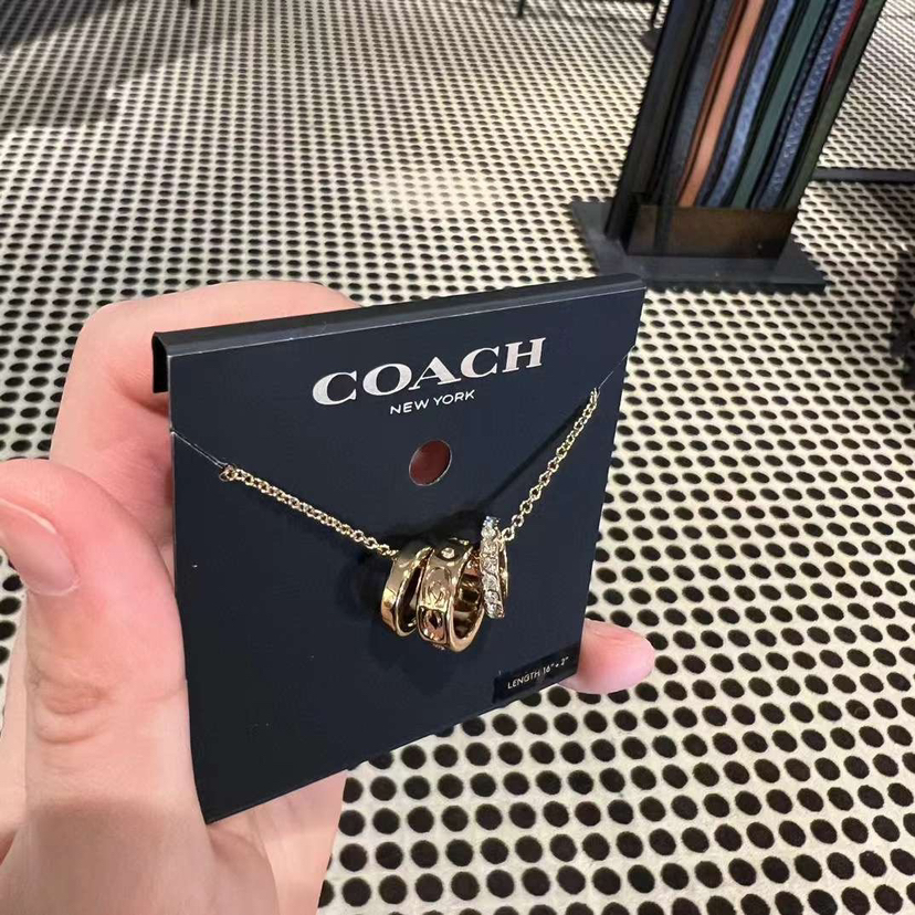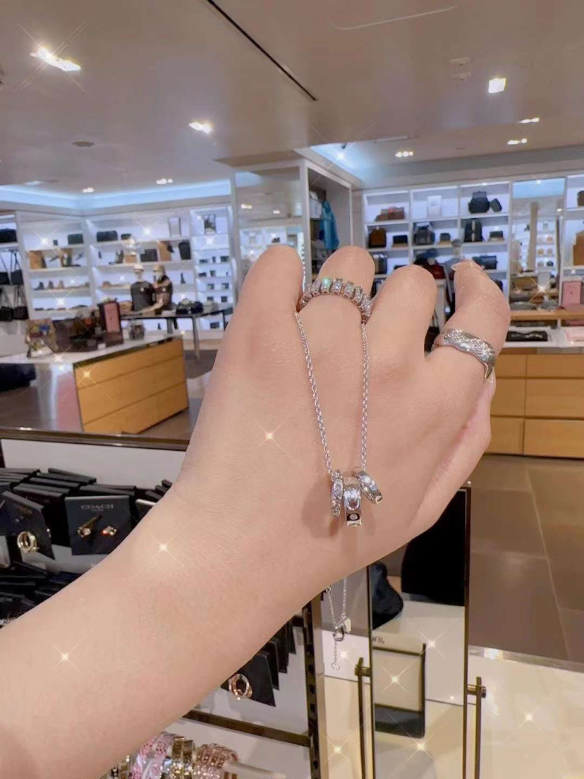 🇺🇸450包邮!银色、金色!coach新款Randell三环项链🥰✨设计太走心了!绝绝子呀💢环圈密镶水晶子超闪💫