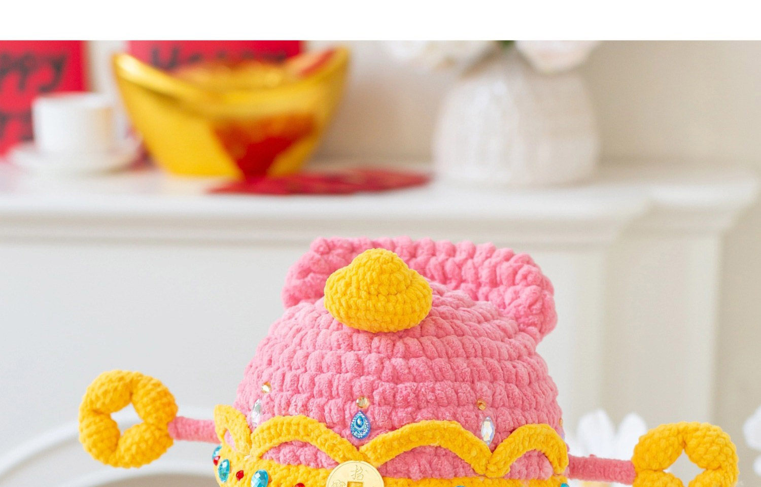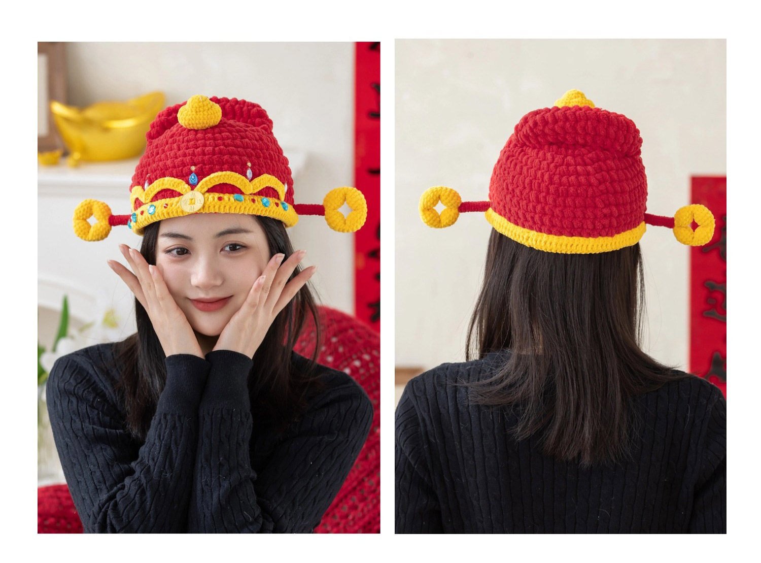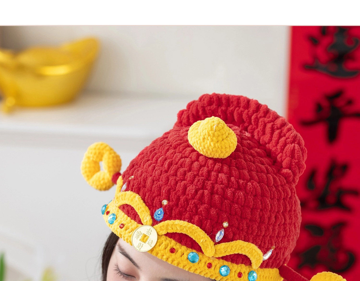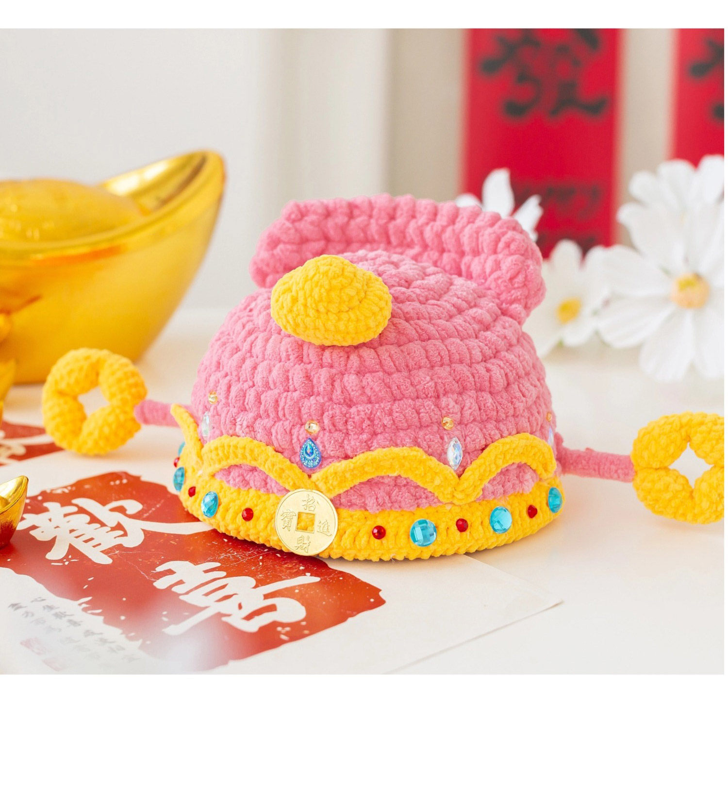 苏苏姐家财神亲子帽手工diy编织钩针胖胖云毛线团帽子材料包