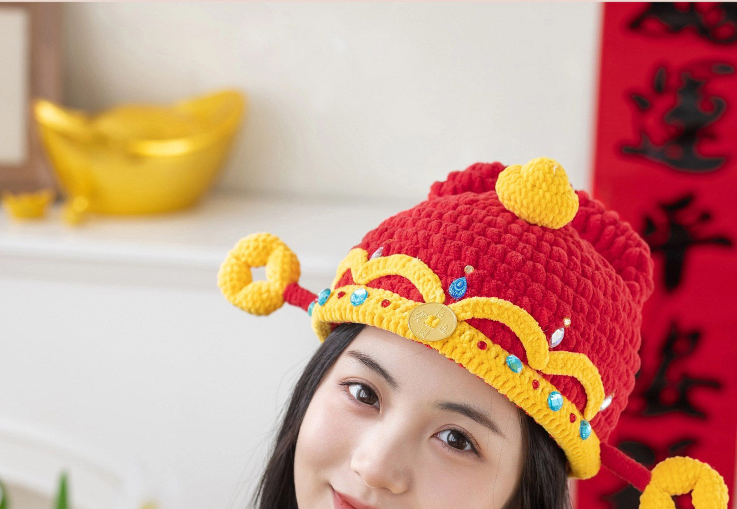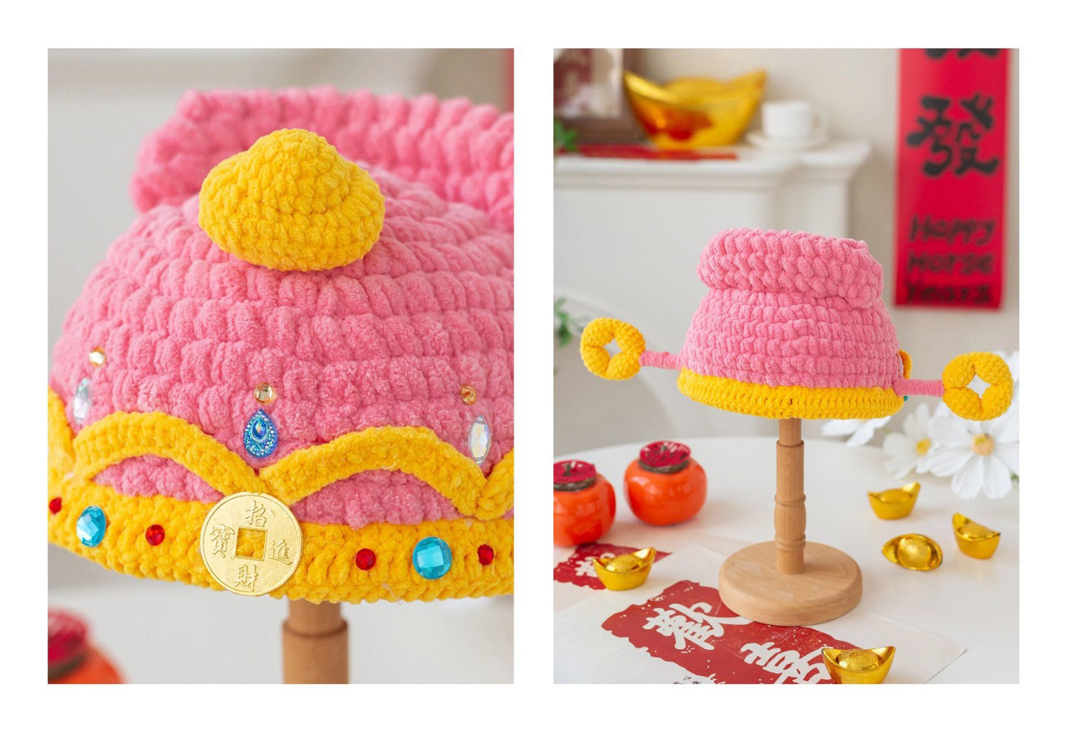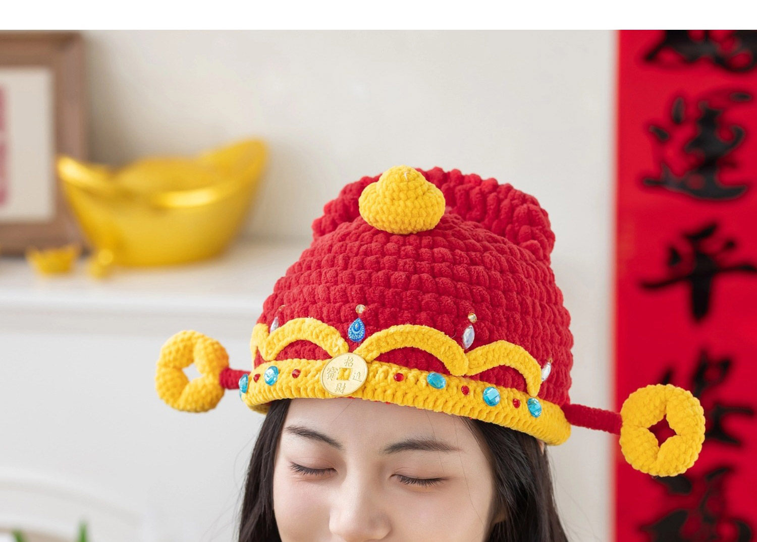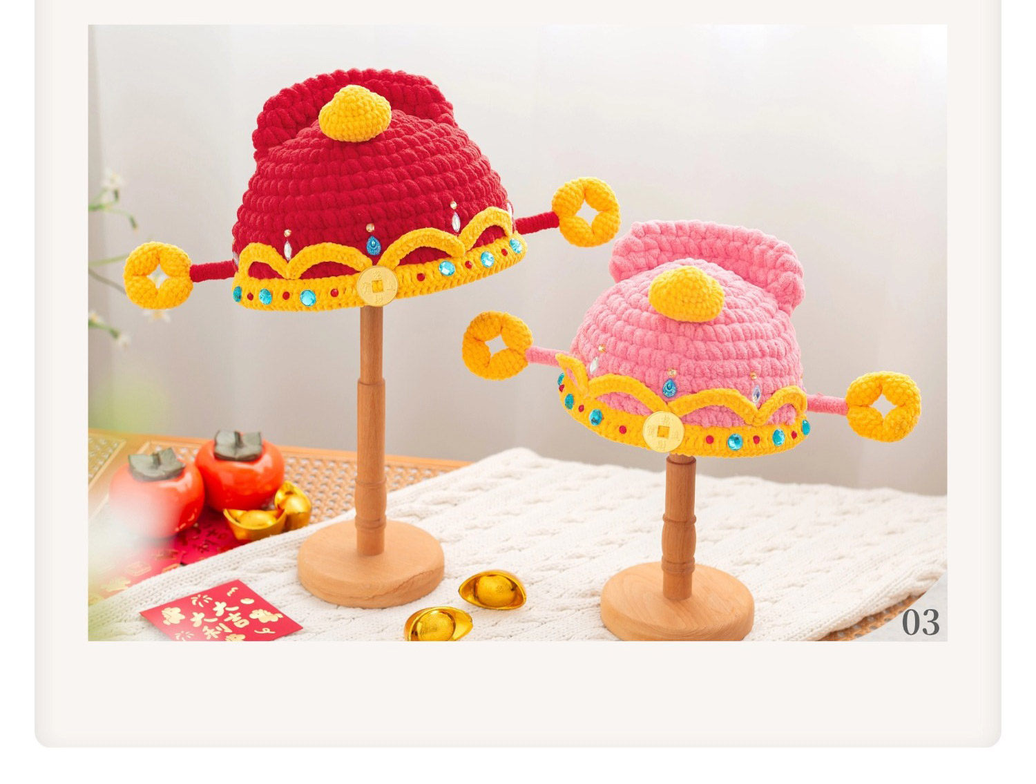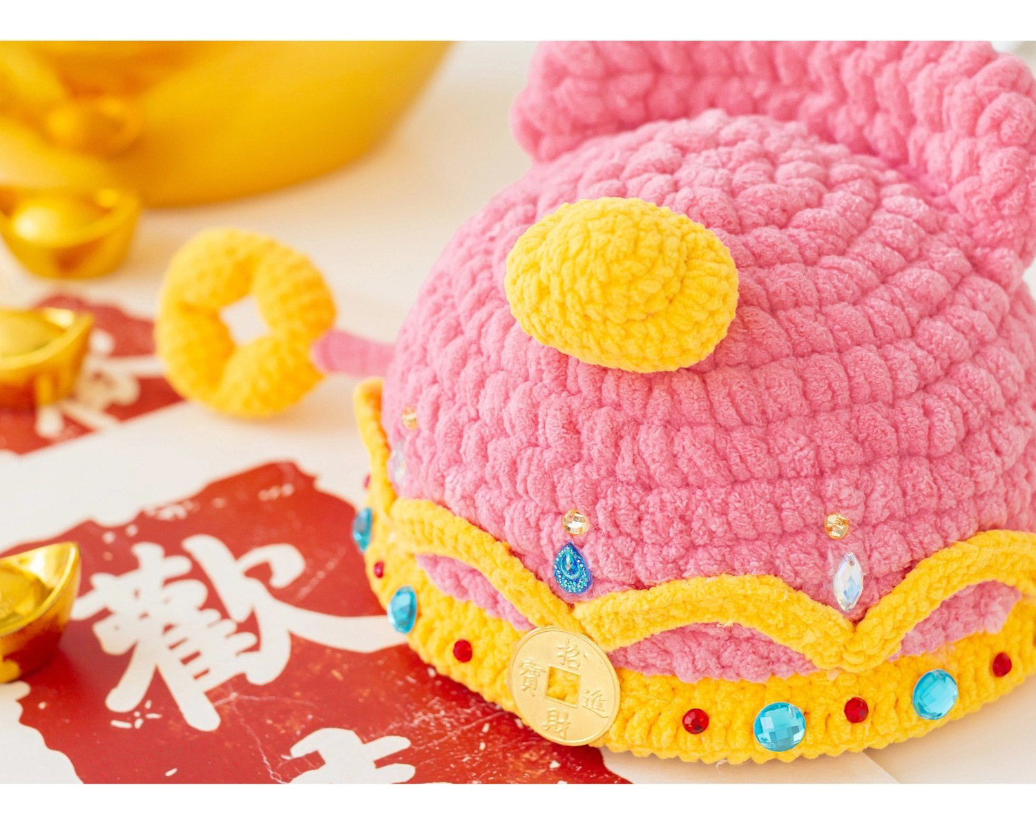 苏苏姐家财神亲子帽手工diy编织钩针胖胖云毛线团帽子材料包