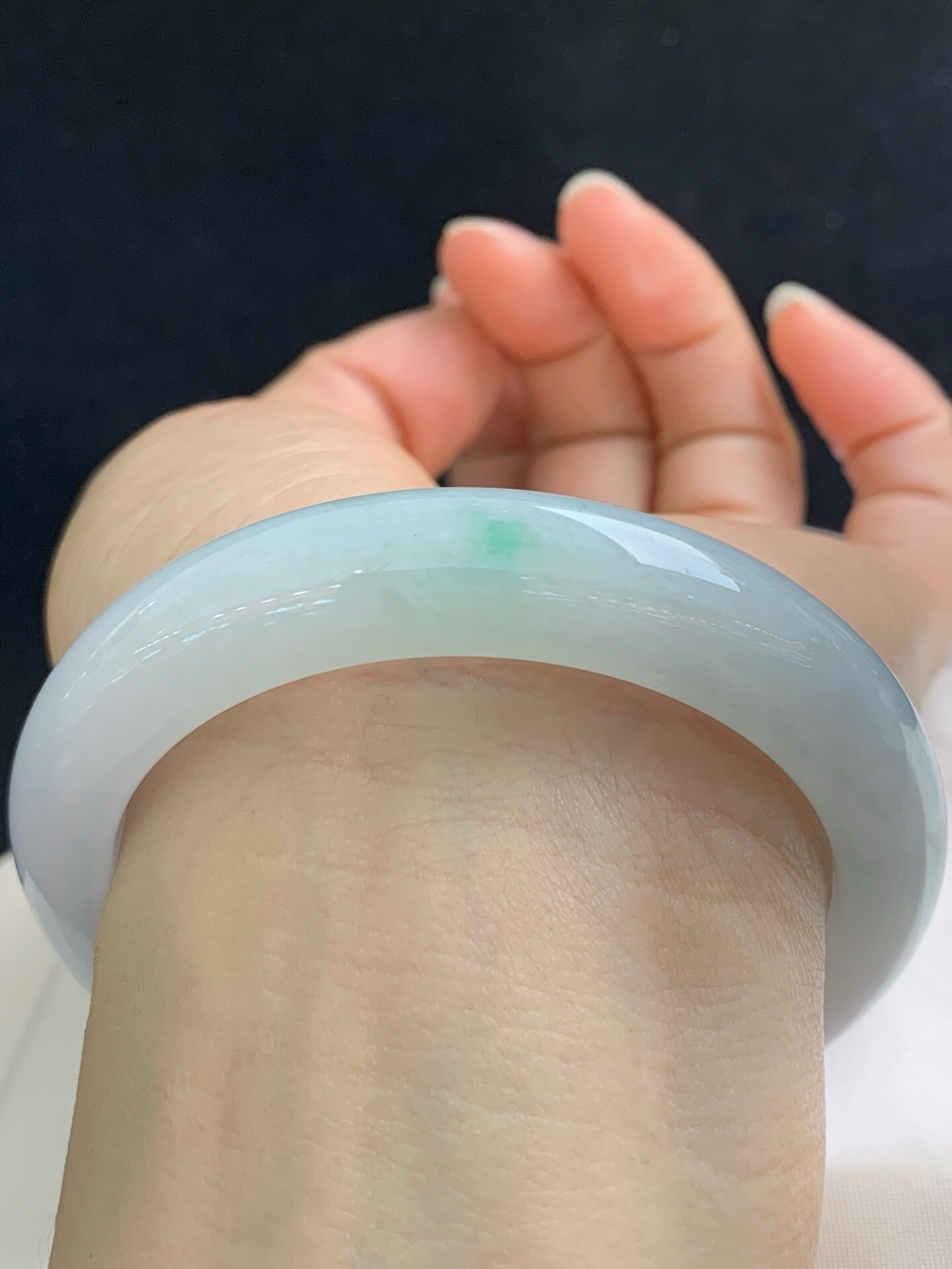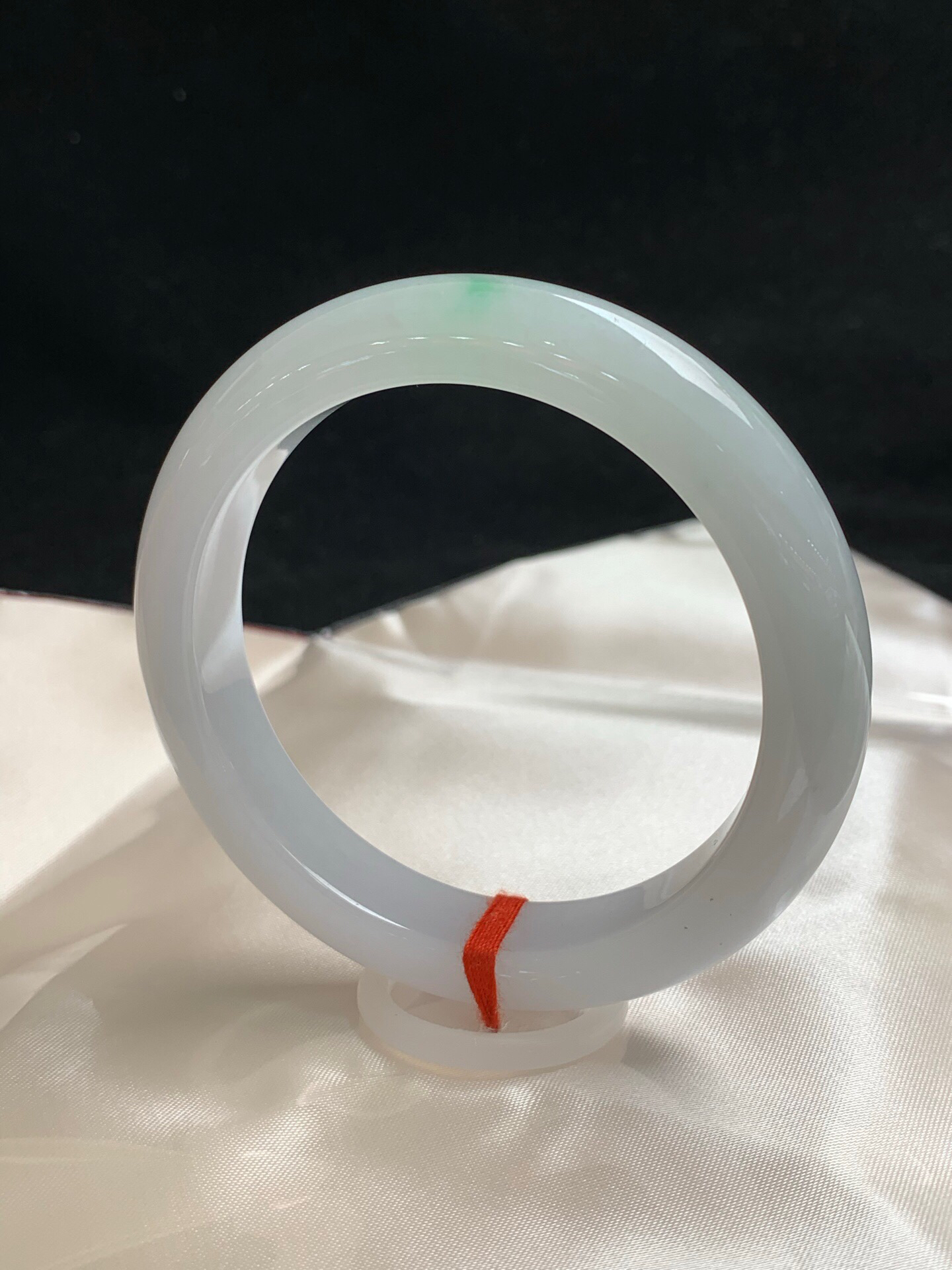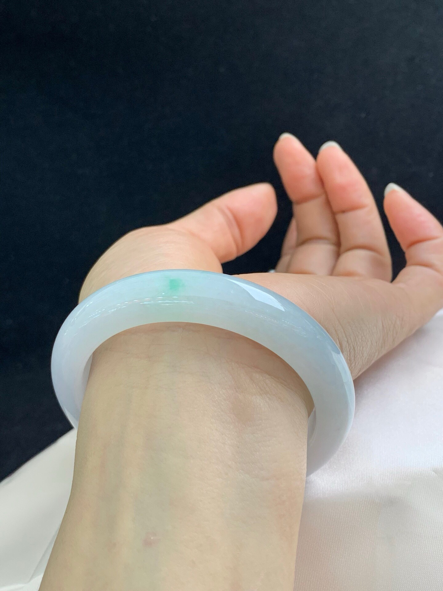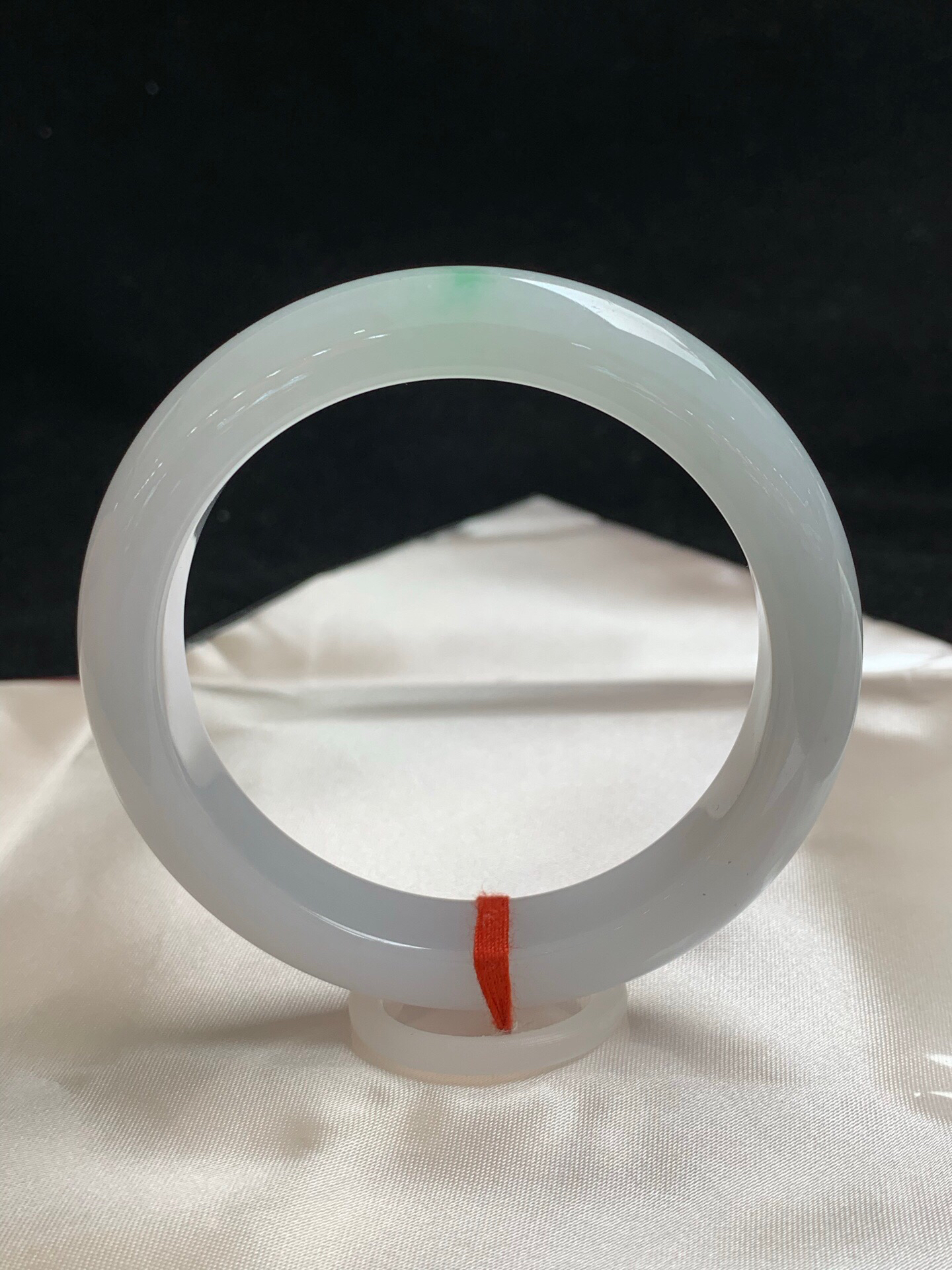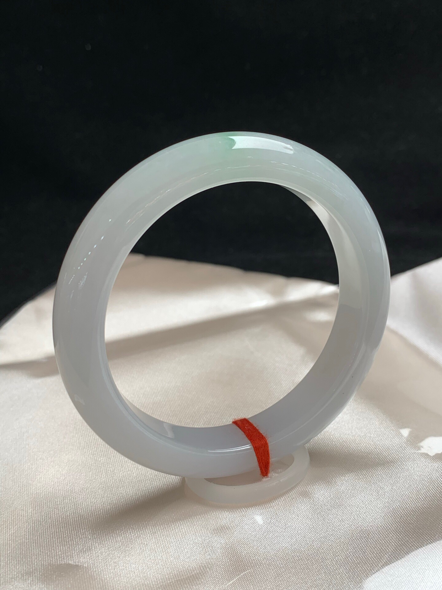 612532,57.6圈口,糯化飘绿正圈平安镯,很淡底色,接近白,飘一点绿,清爽秀气