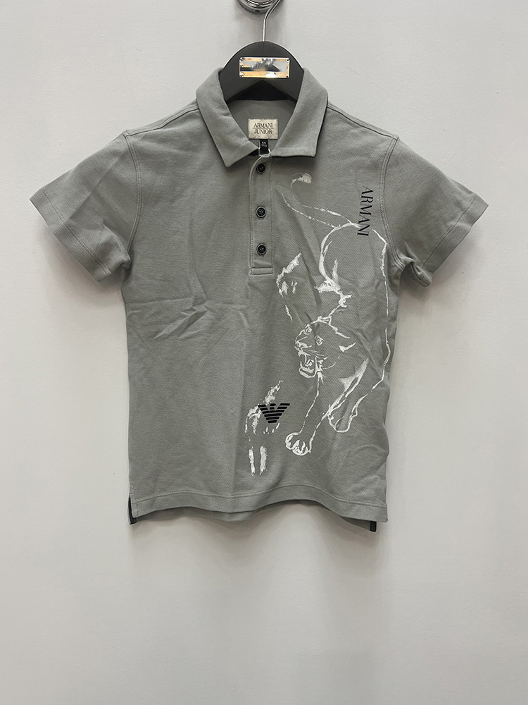 ARMANI JUNIOR/AJ 阿玛尼 男童纯棉三粒扣休闲印花短袖POLO衫