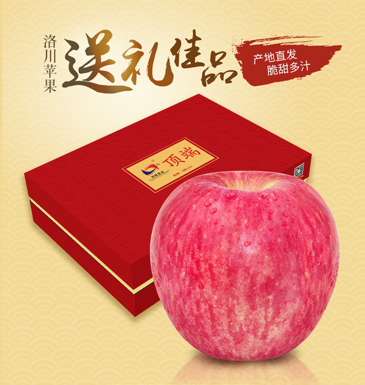 【摆盘贴字苹果】陕西洛川红富士12枚90mm特大果红礼盒装送礼摆盘