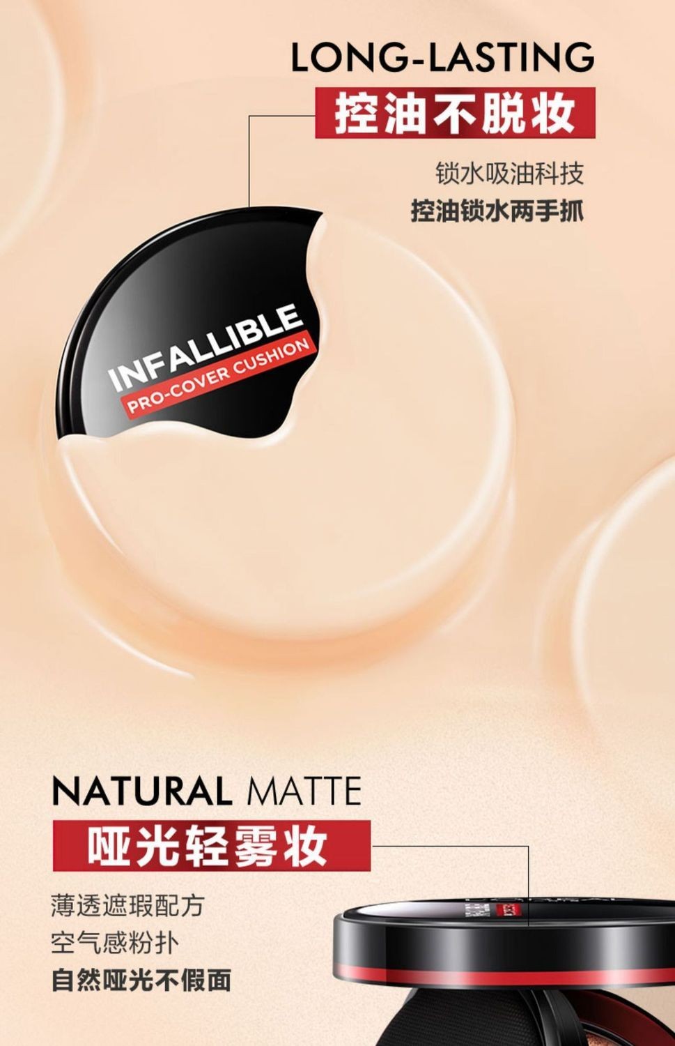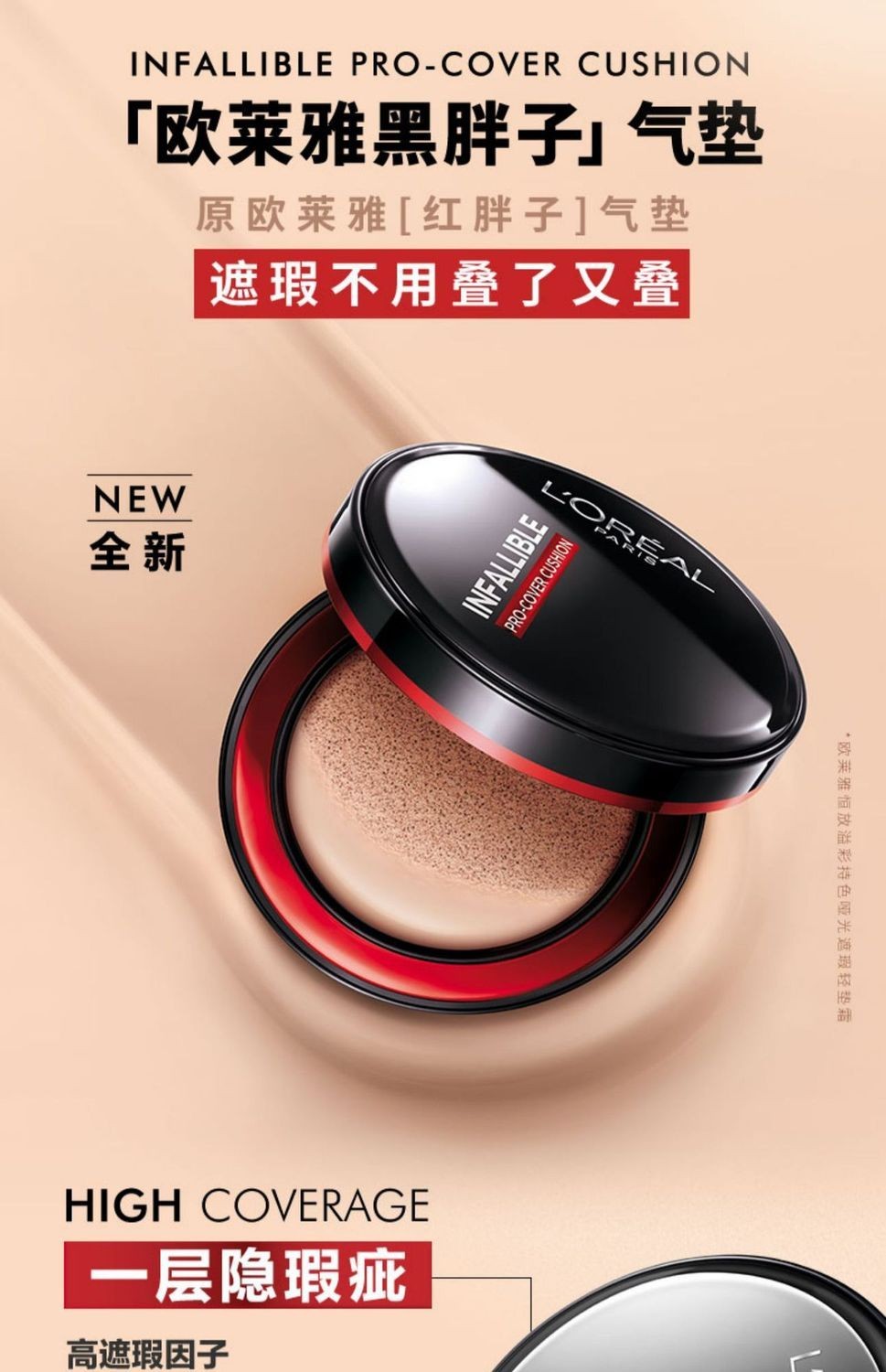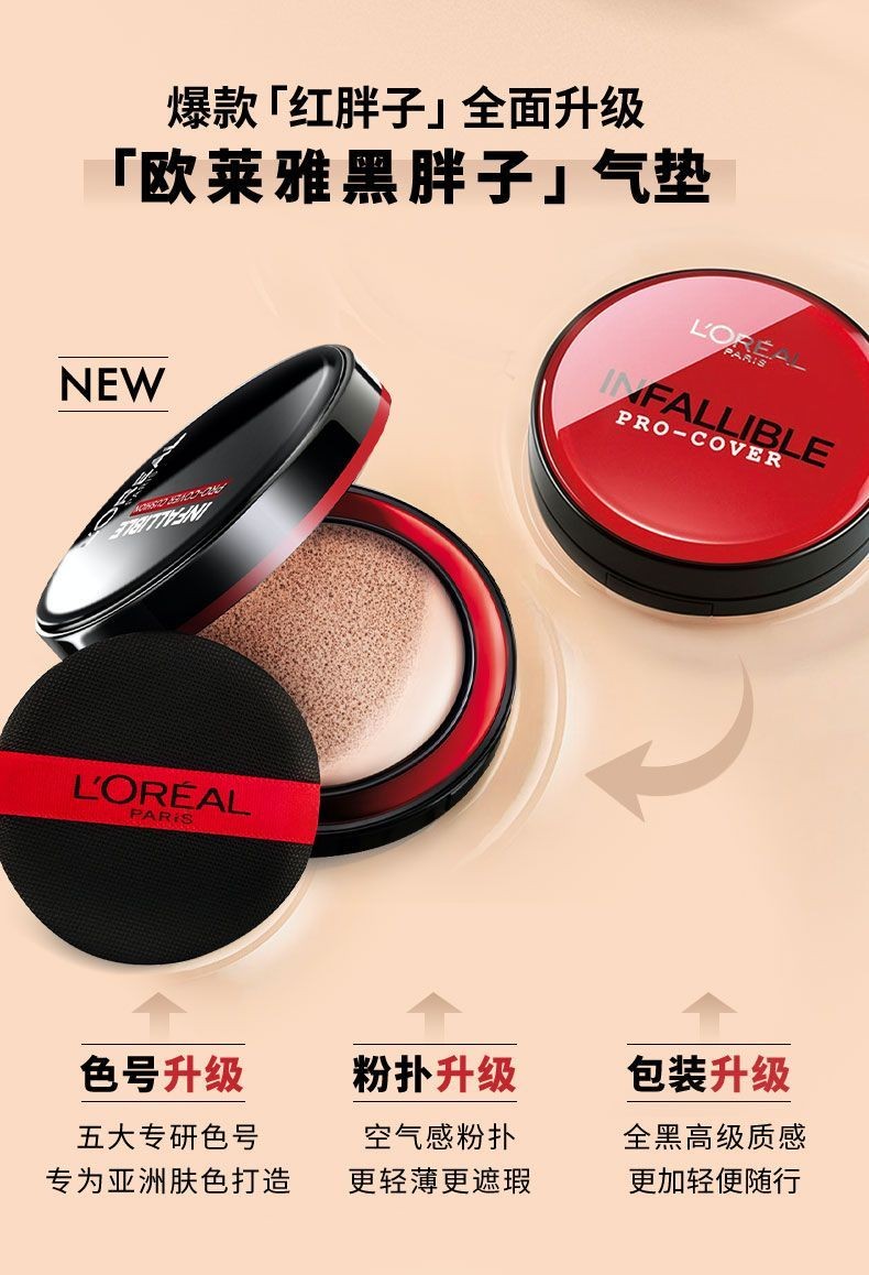 欧莱雅黑胖子气垫bb霜14g带替换装 遮瑕持久不易脱妆哑光控油