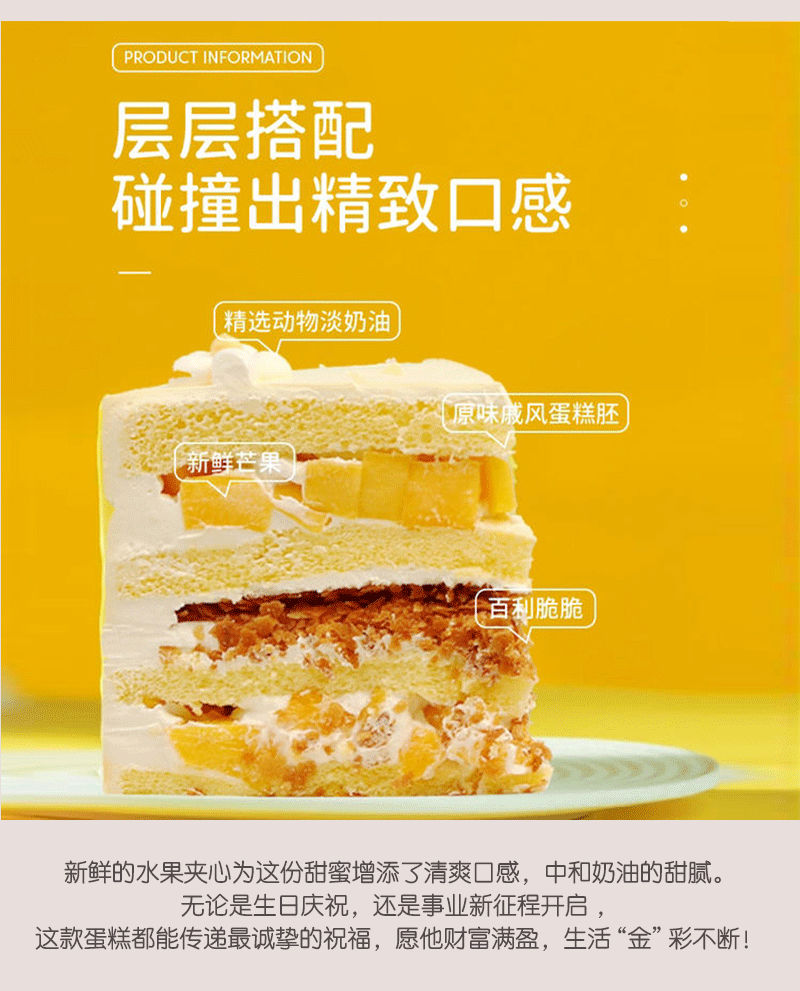 我们坚持当日接单、新鲜现做,拒绝罐头果肉与植物奶油,让每一口都保留食材本真的鲜活清甜。生活需要一点甜,我们的蛋糕不只是一份甜品,更是传递快乐的仪式感,为你带来视觉与味蕾的双重满足~