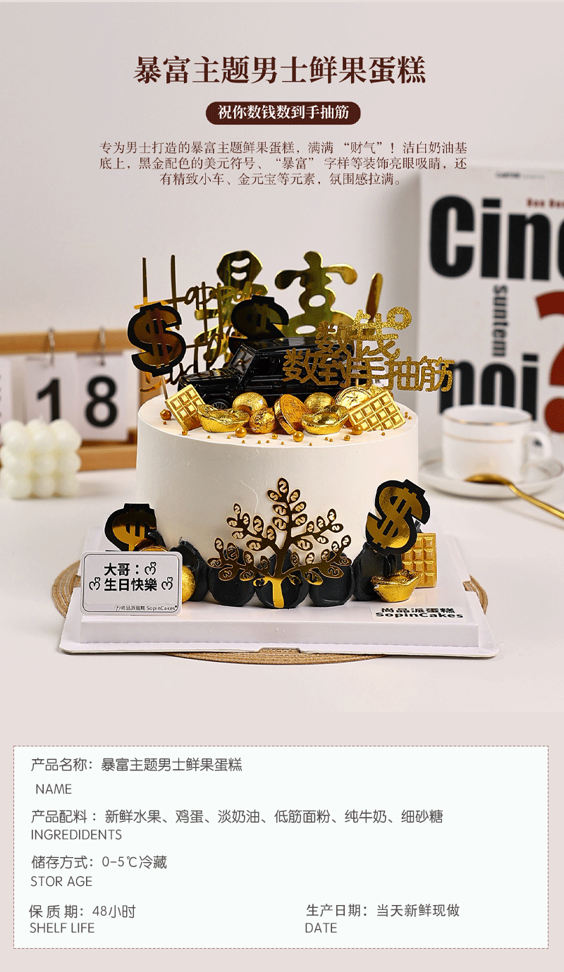 暴富主题男士鲜果蛋糕|祝你数钱数到手抽筋【惠州】
