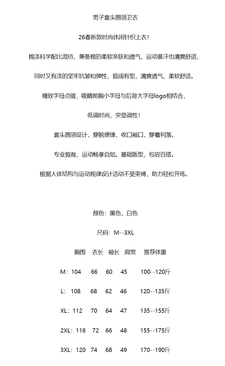 【cz1】26春新款男子简约休闲圆领套头卫衣!!