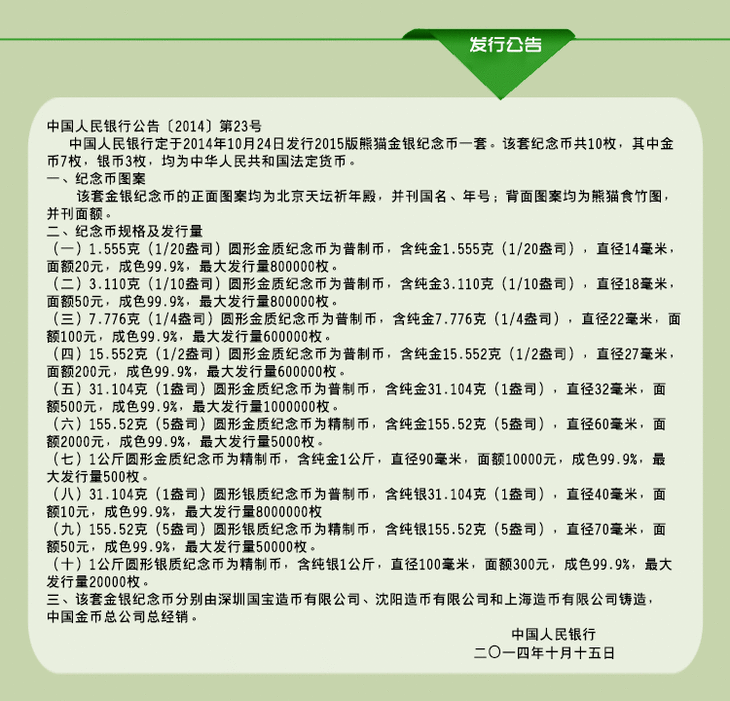 15年五盎司熊猫银币 原盒原证 现货