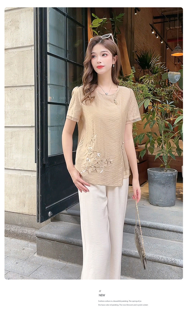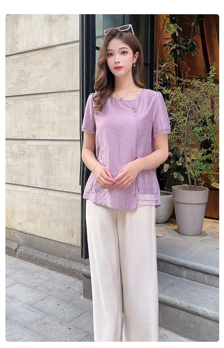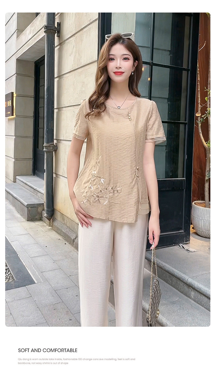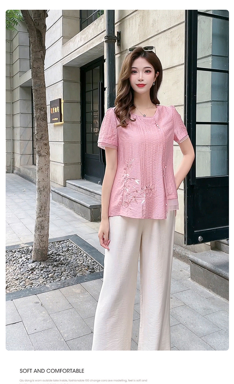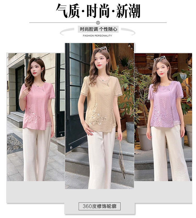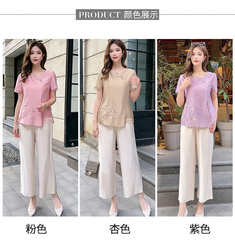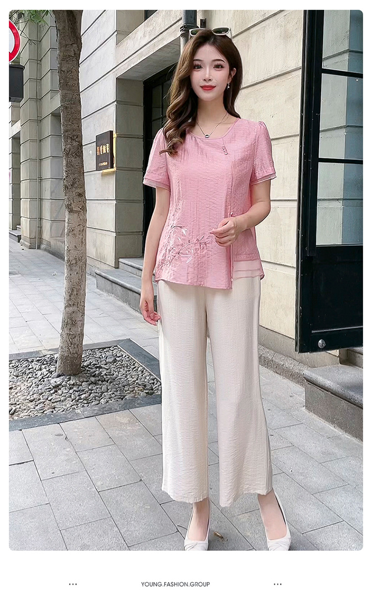 QYM YZY2467-Y妈妈装休闲两件套不对称小衫+直筒裤套装 商品图2
