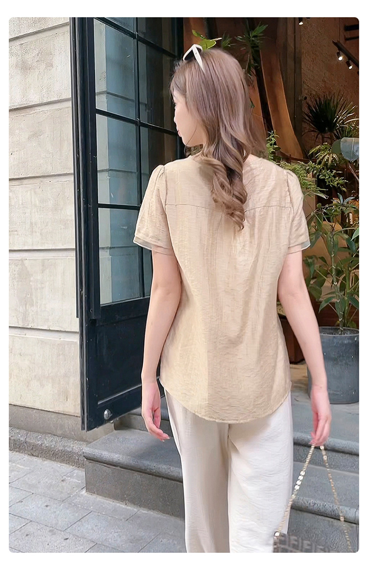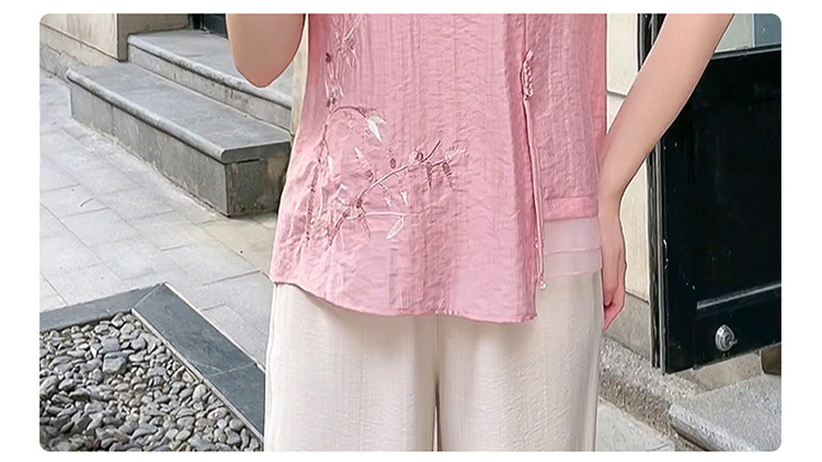 QYM YZY2467-Y妈妈装休闲两件套不对称小衫+直筒裤套装 商品图3