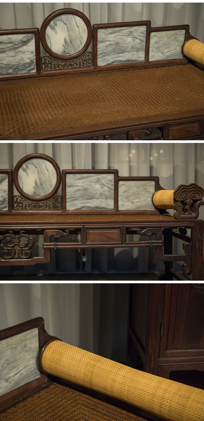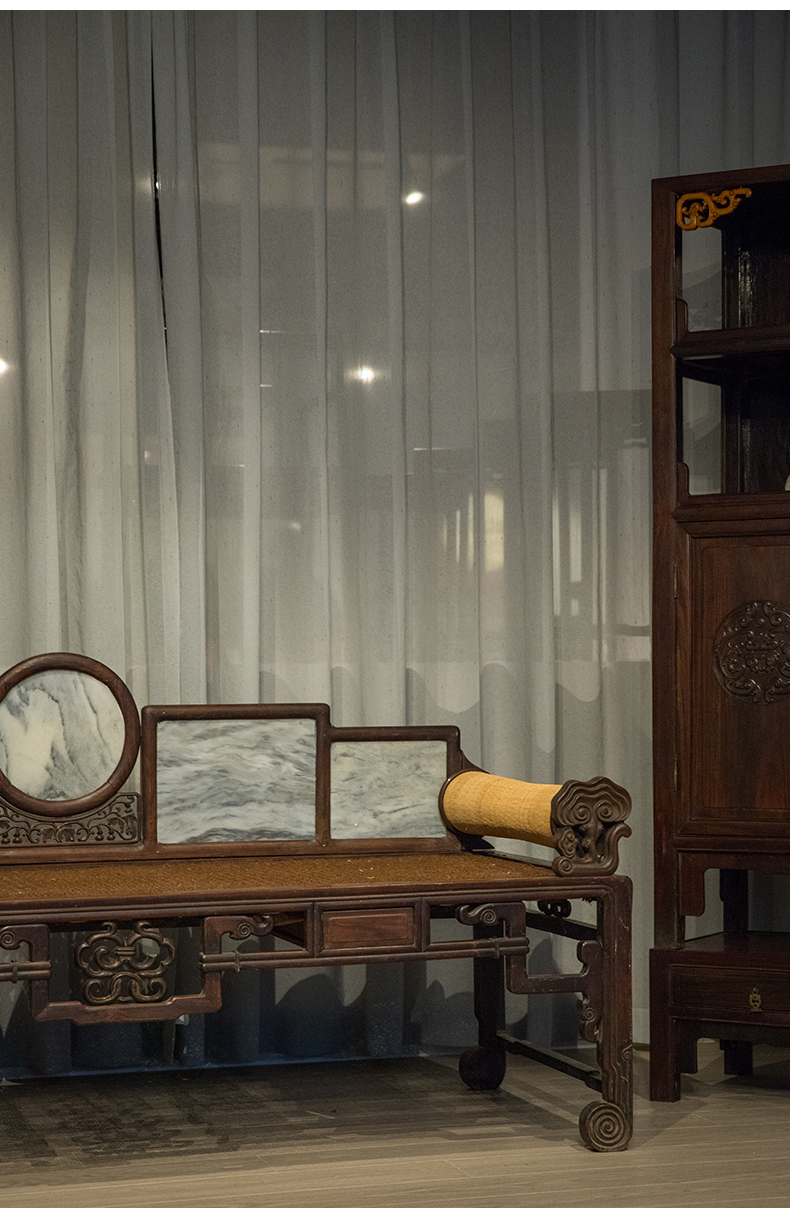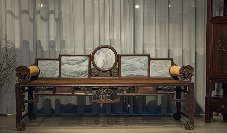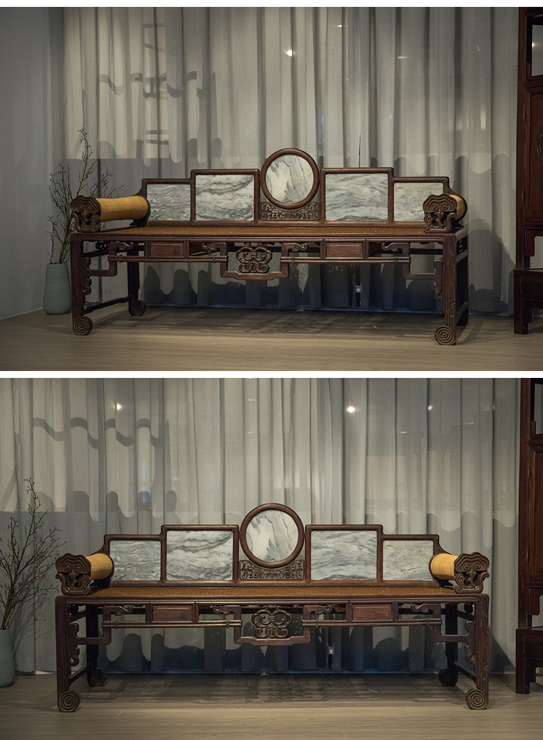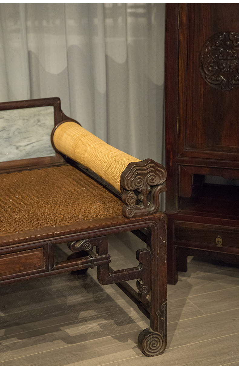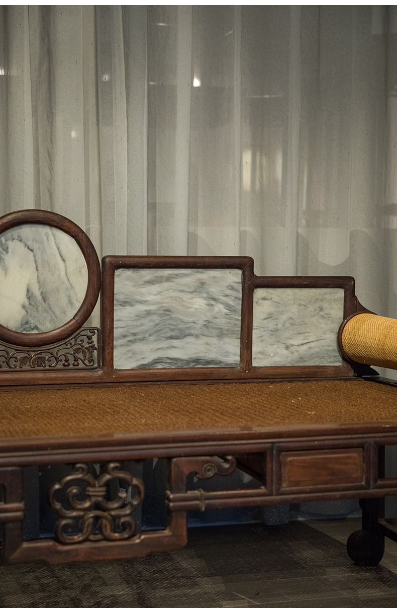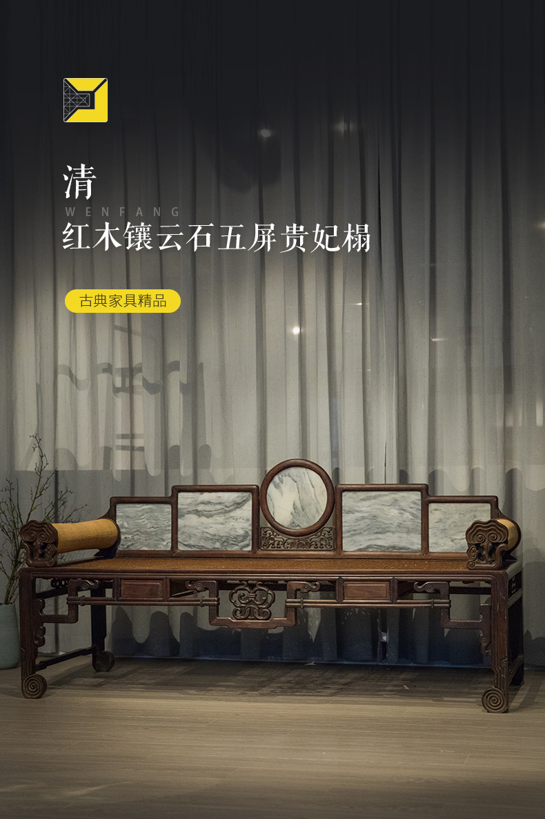 清 红木镶云石五屏贵妃榻