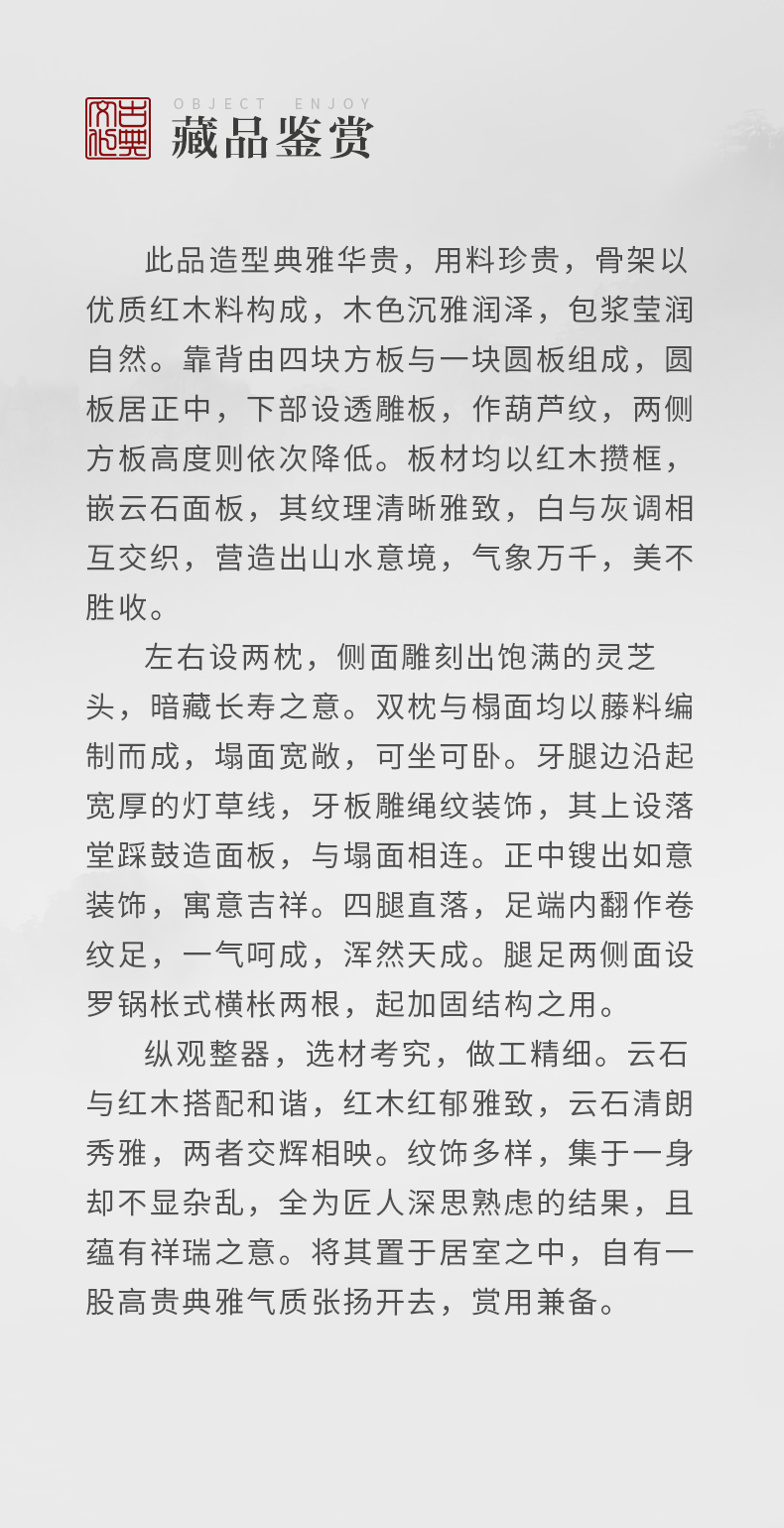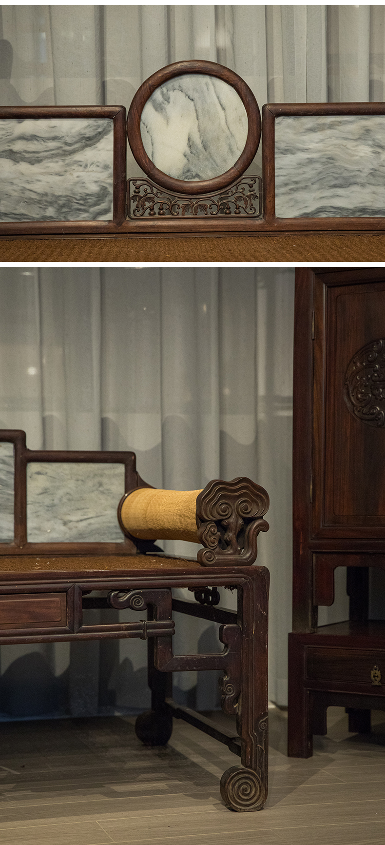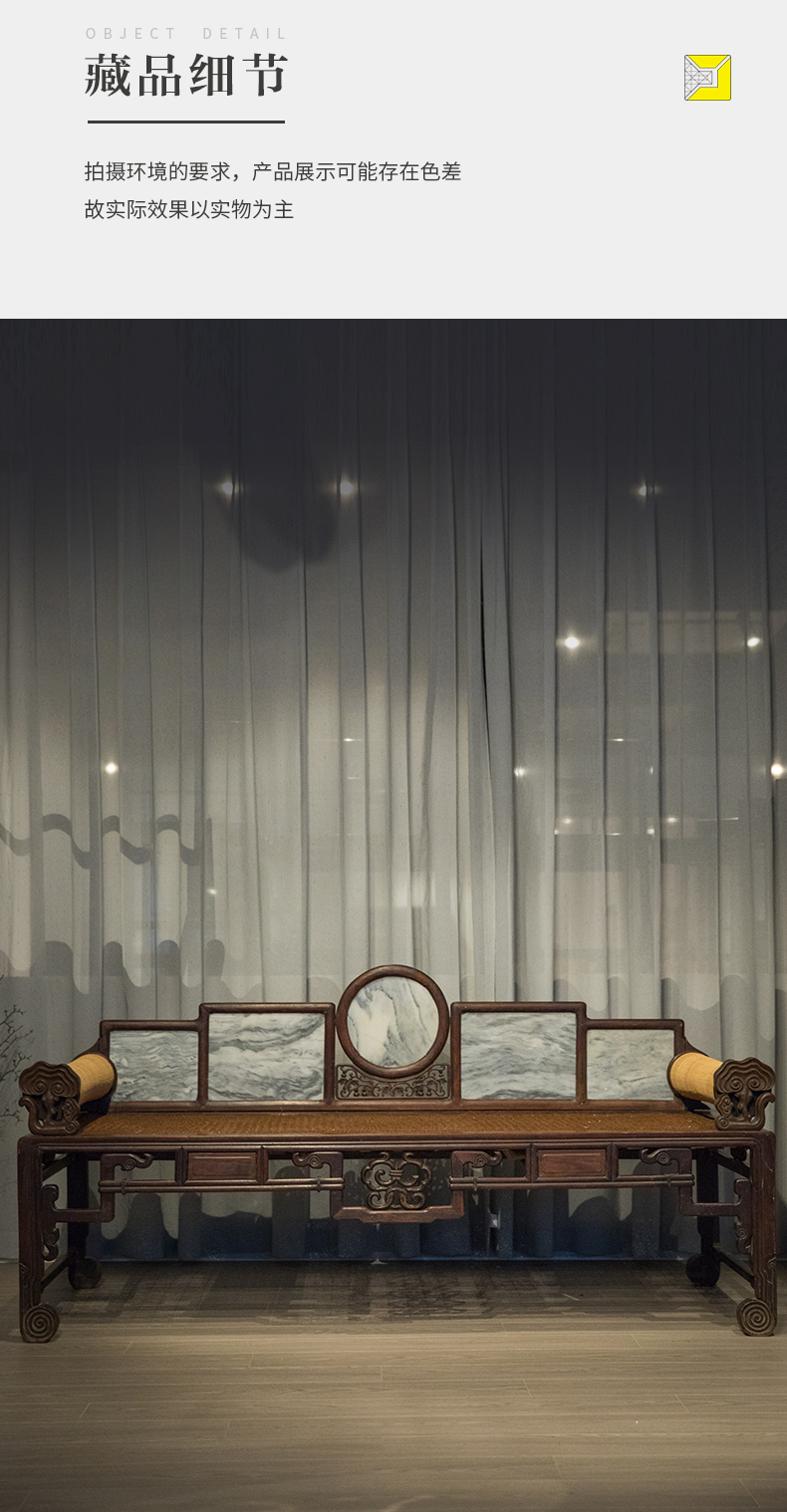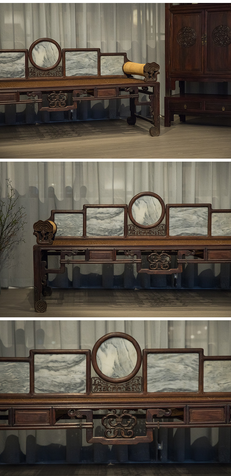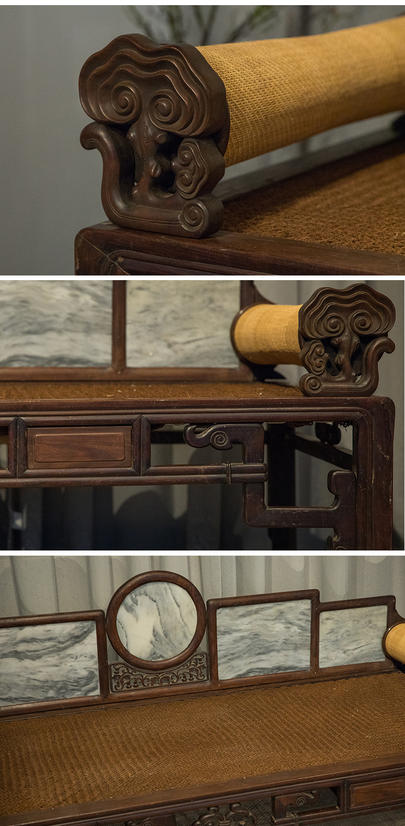 清 红木镶云石五屏贵妃榻