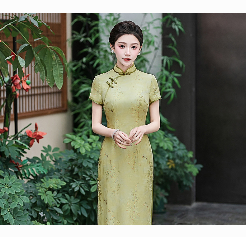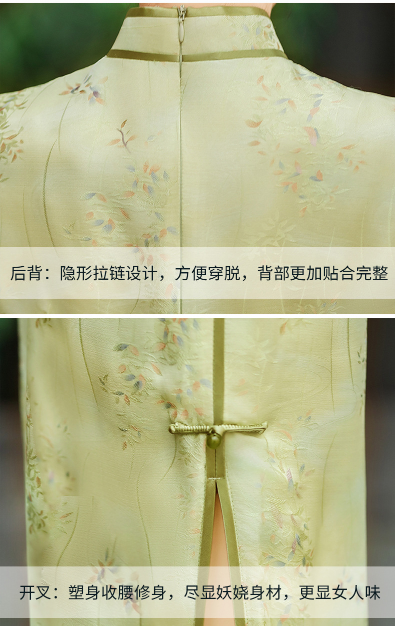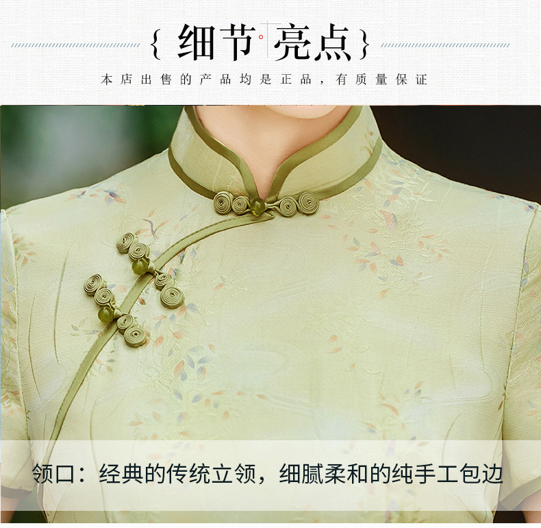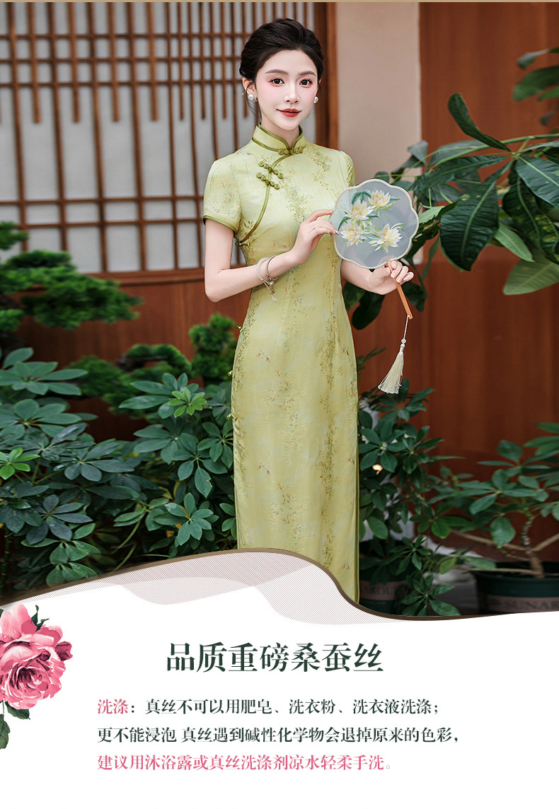 WX-2025春季新款真丝旗袍中式桑蚕丝连衣裙手工缝制送考宴席日常可穿