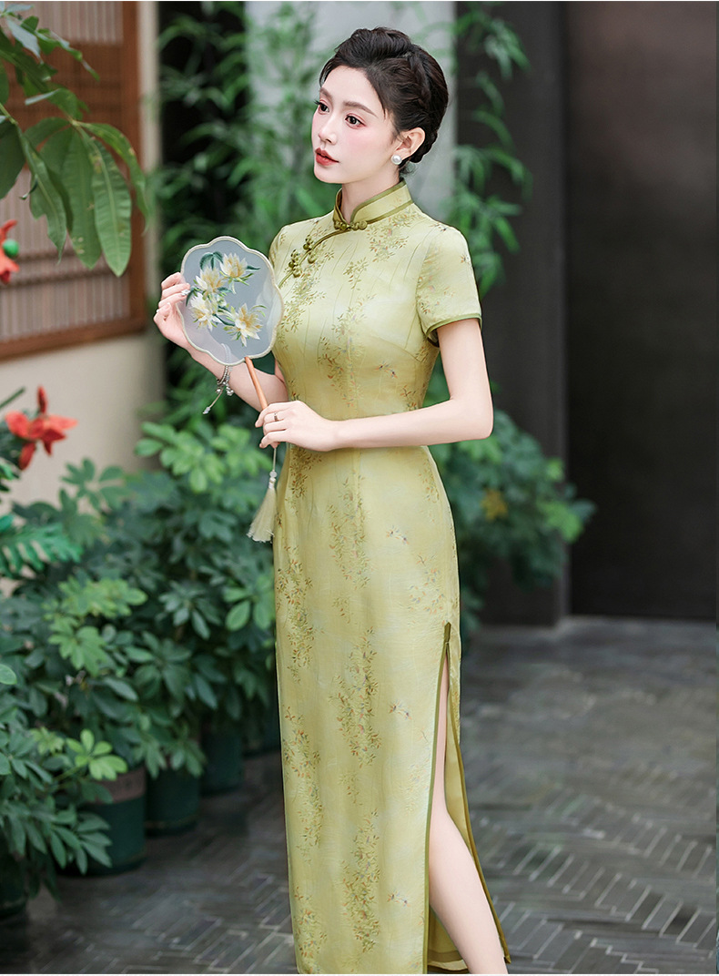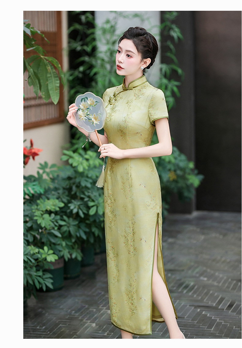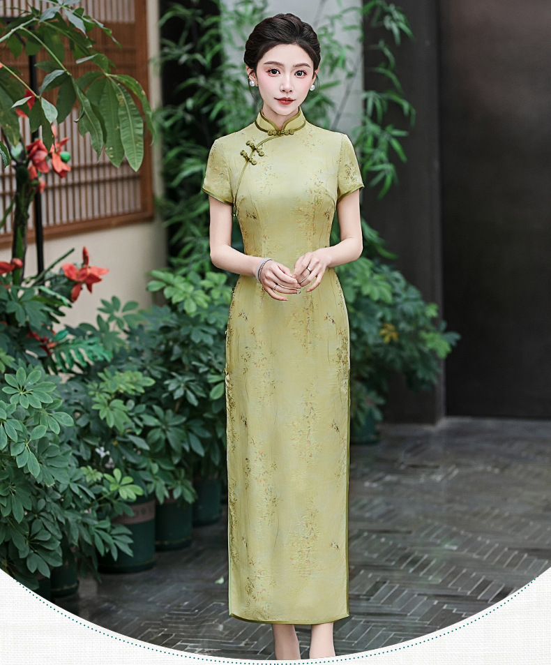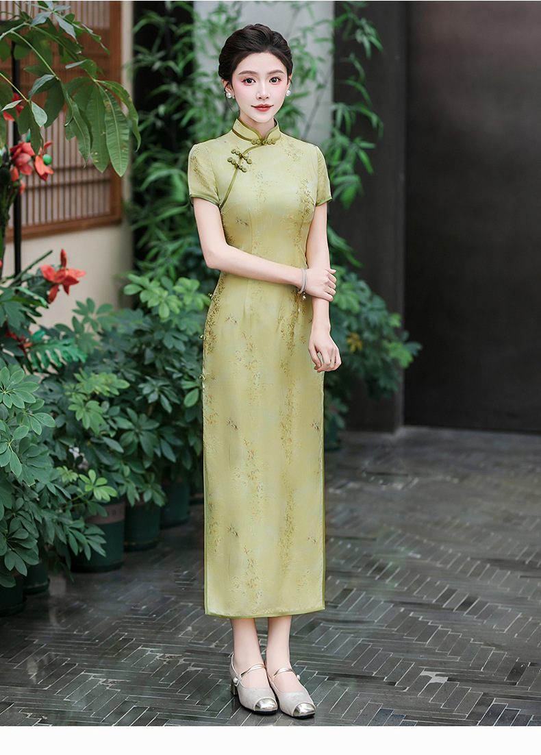 WX-2025春季新款真丝旗袍中式桑蚕丝连衣裙手工缝制送考宴席日常可穿