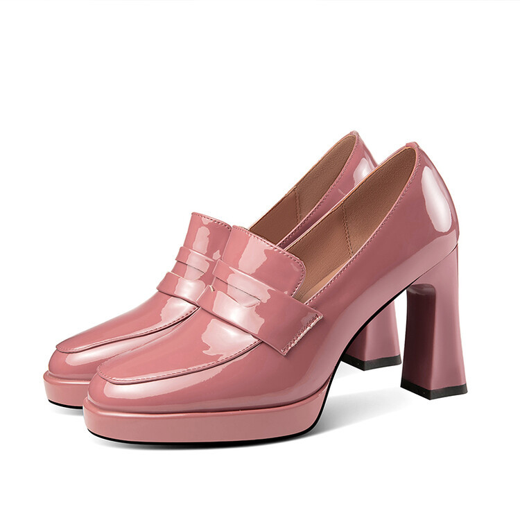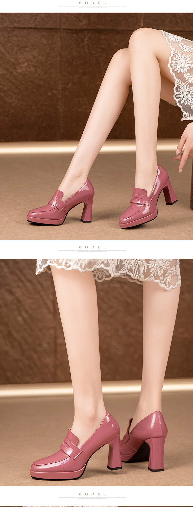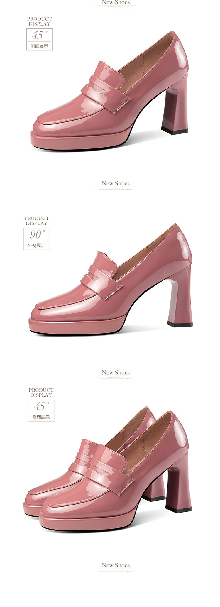 BZ95874粉红色圆头防水台高跟鞋女2025春秋季新款厚底中口粗跟单鞋漆皮潮